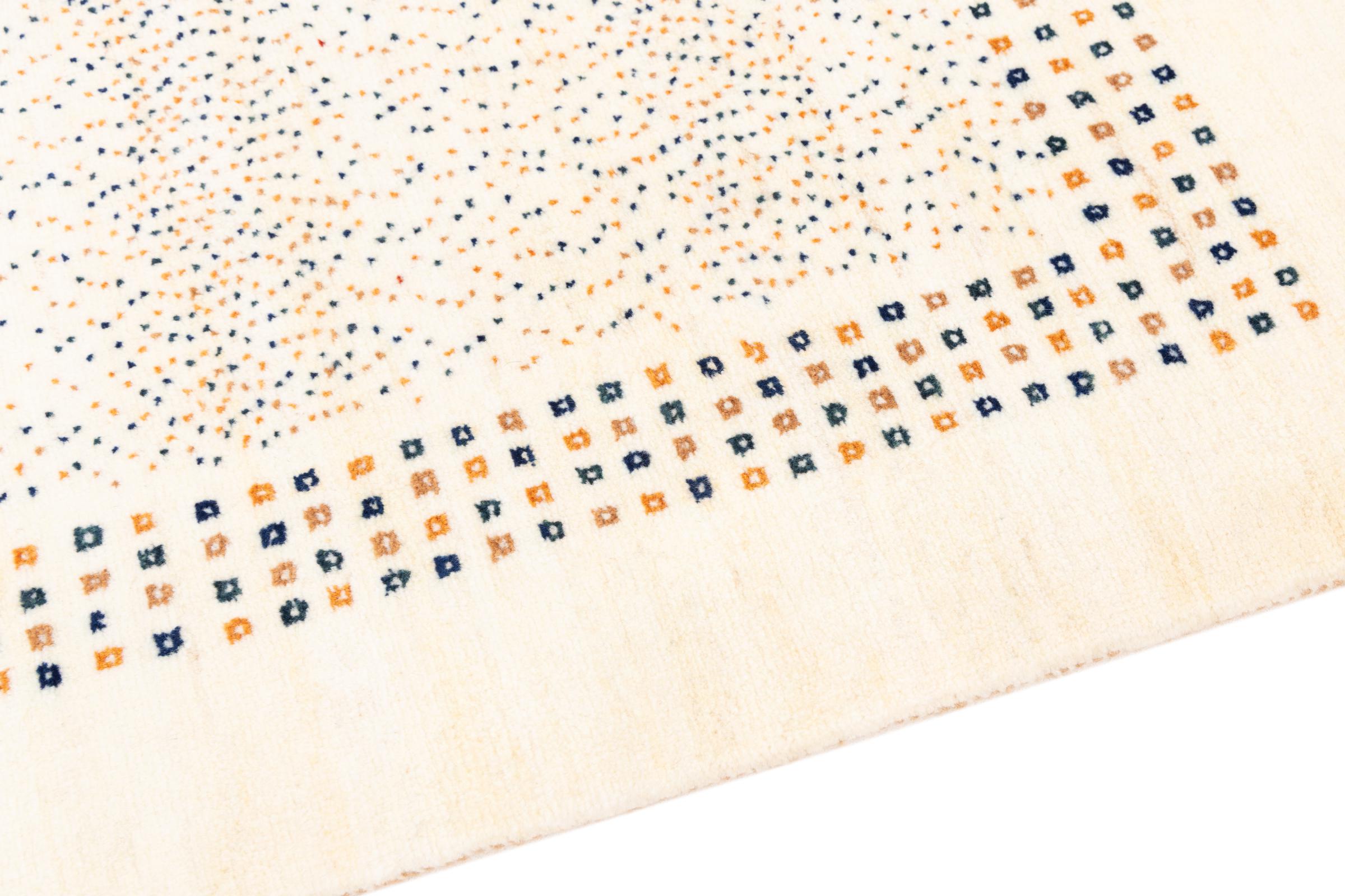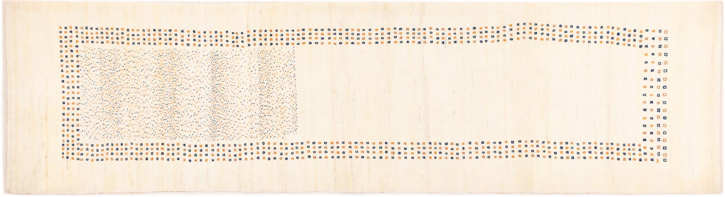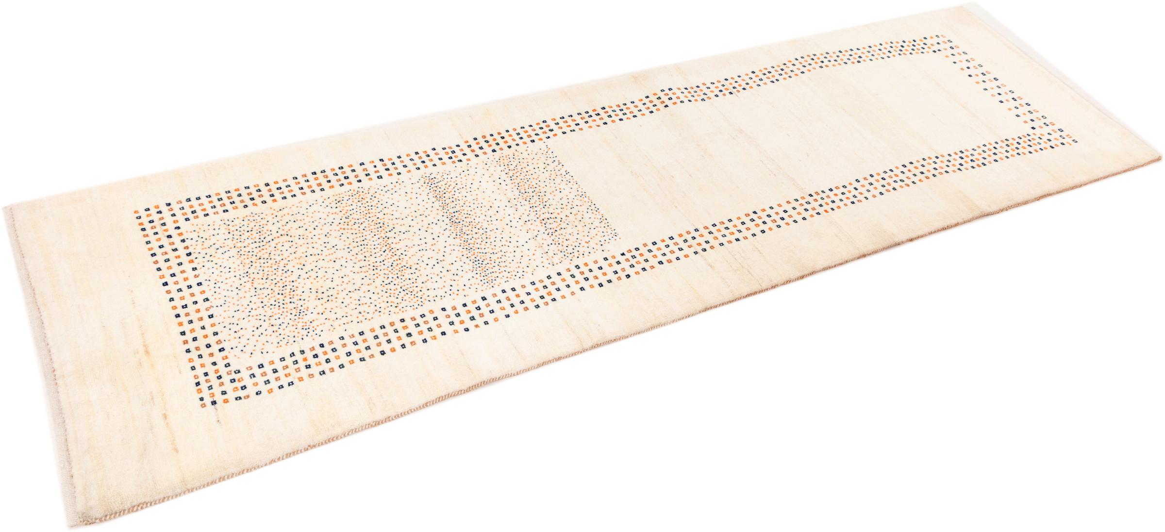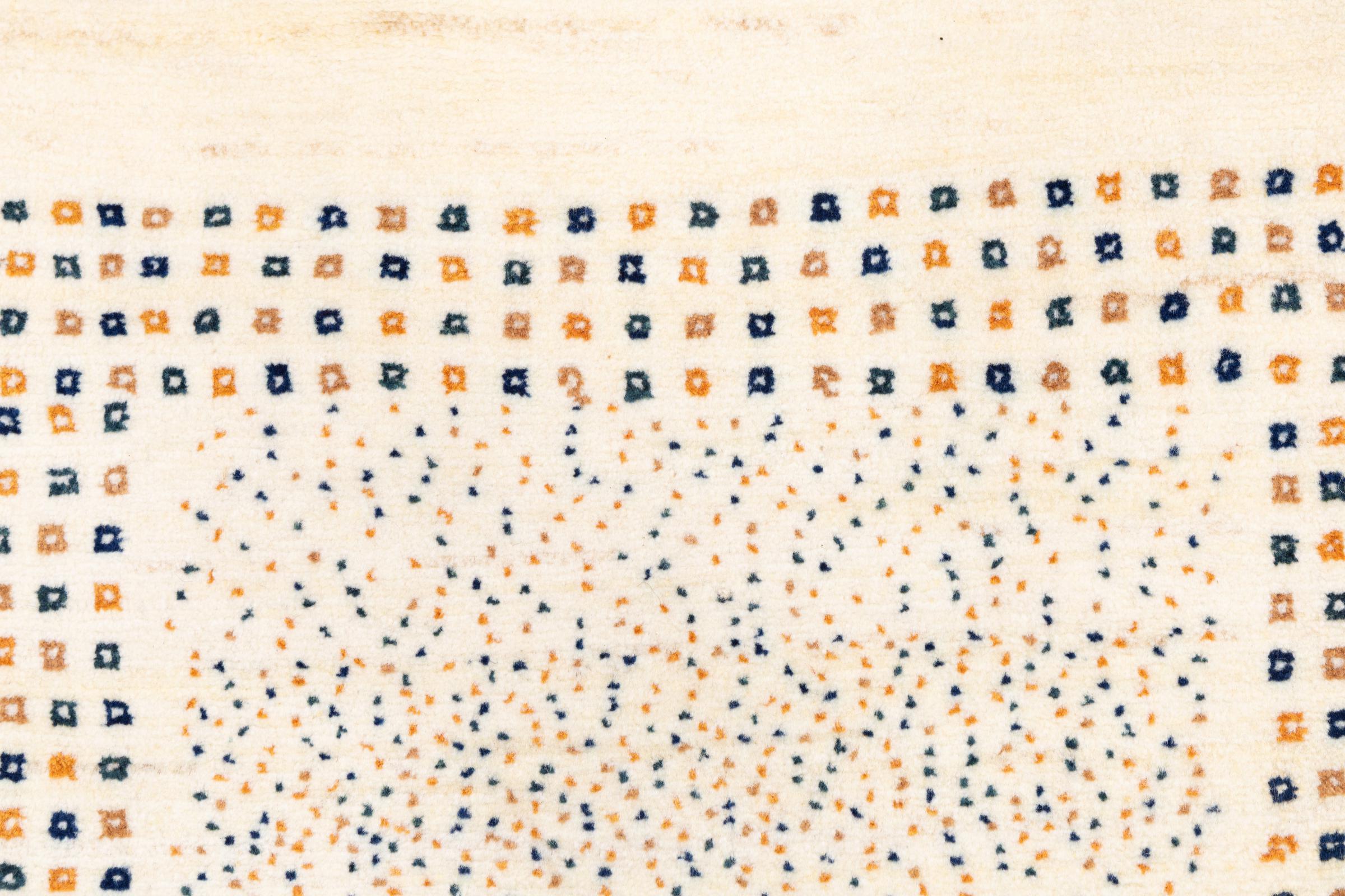 Denna persiska Gabbeh nomadmatta har knutits för hand på traditionellt sätt och består av högkvalitativ nyfleece. De starka färgerna och de enkla mönstren gör varje stycke unikt. Robust, hållbar och särskilt mjuk – idealisk för mysiga bostadsutrymmen.