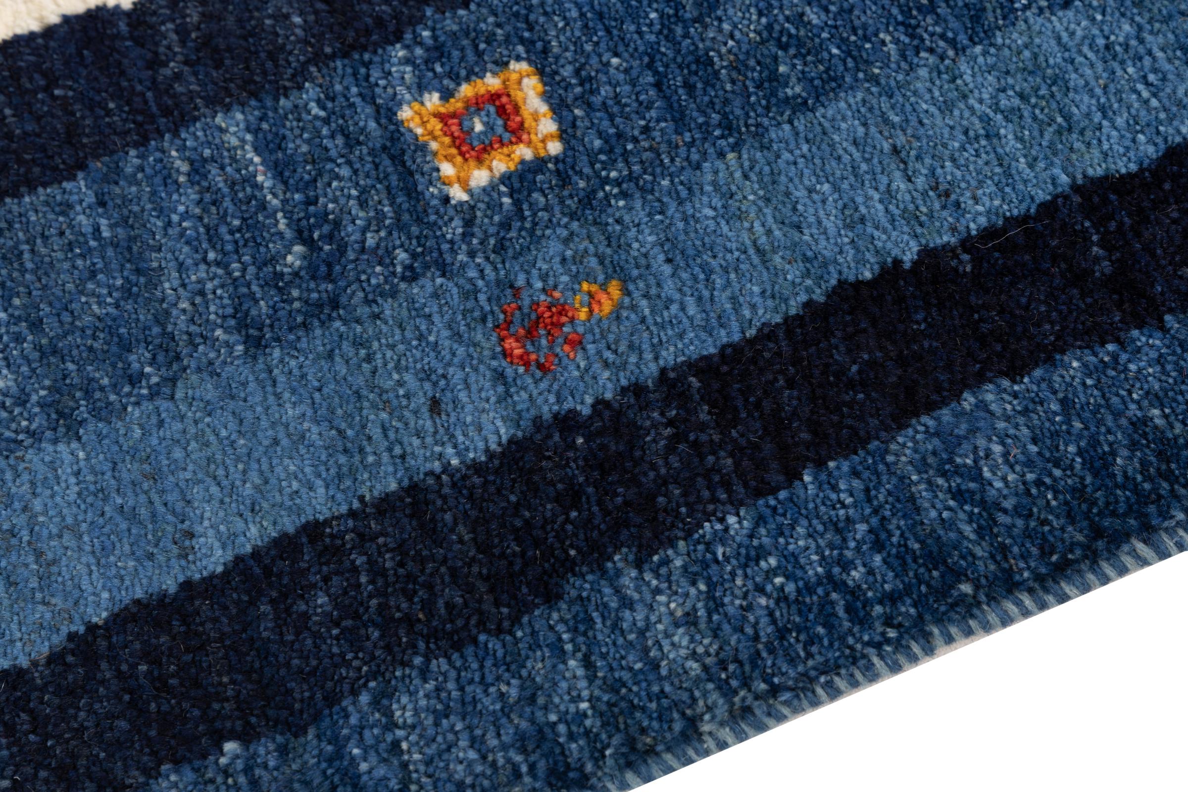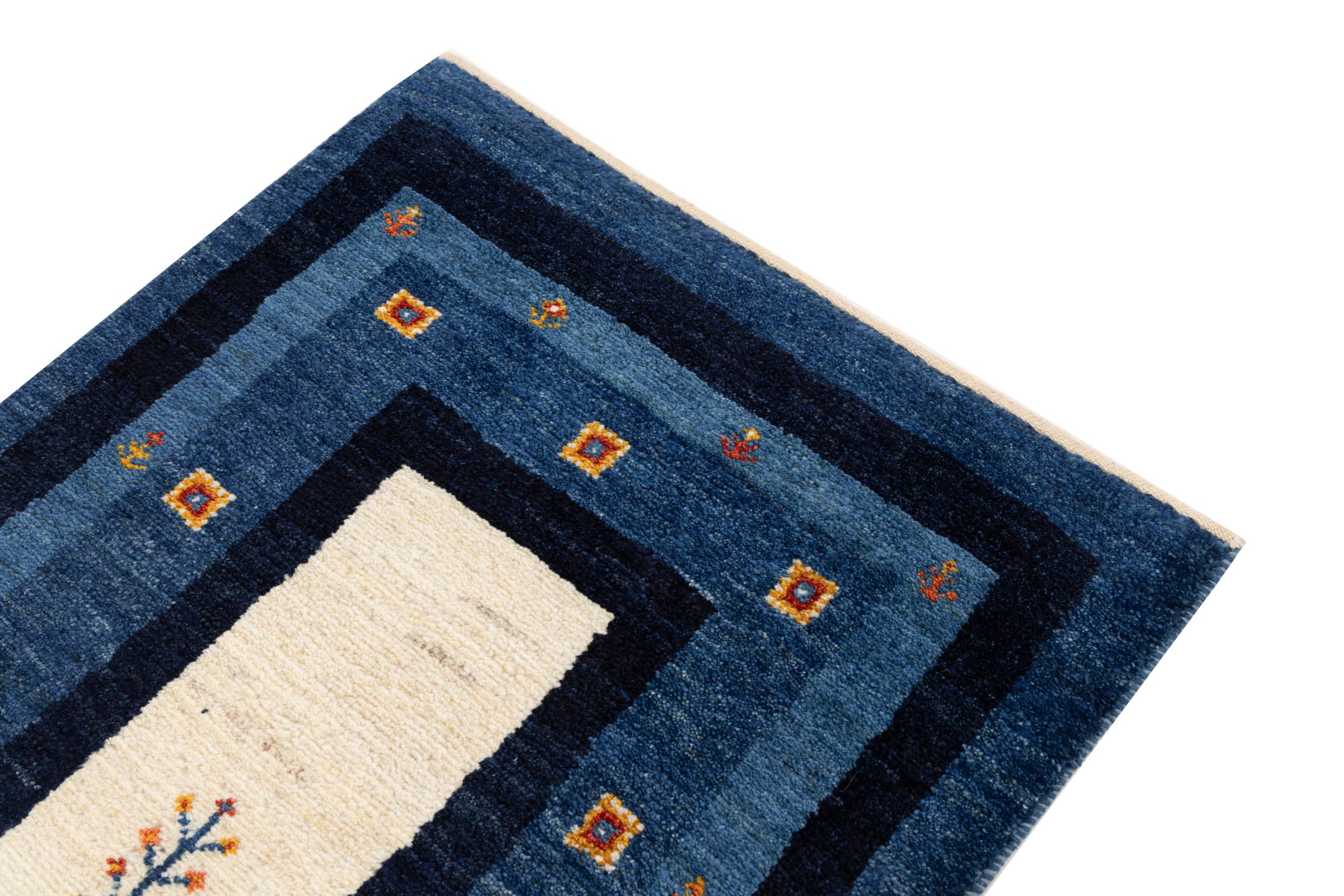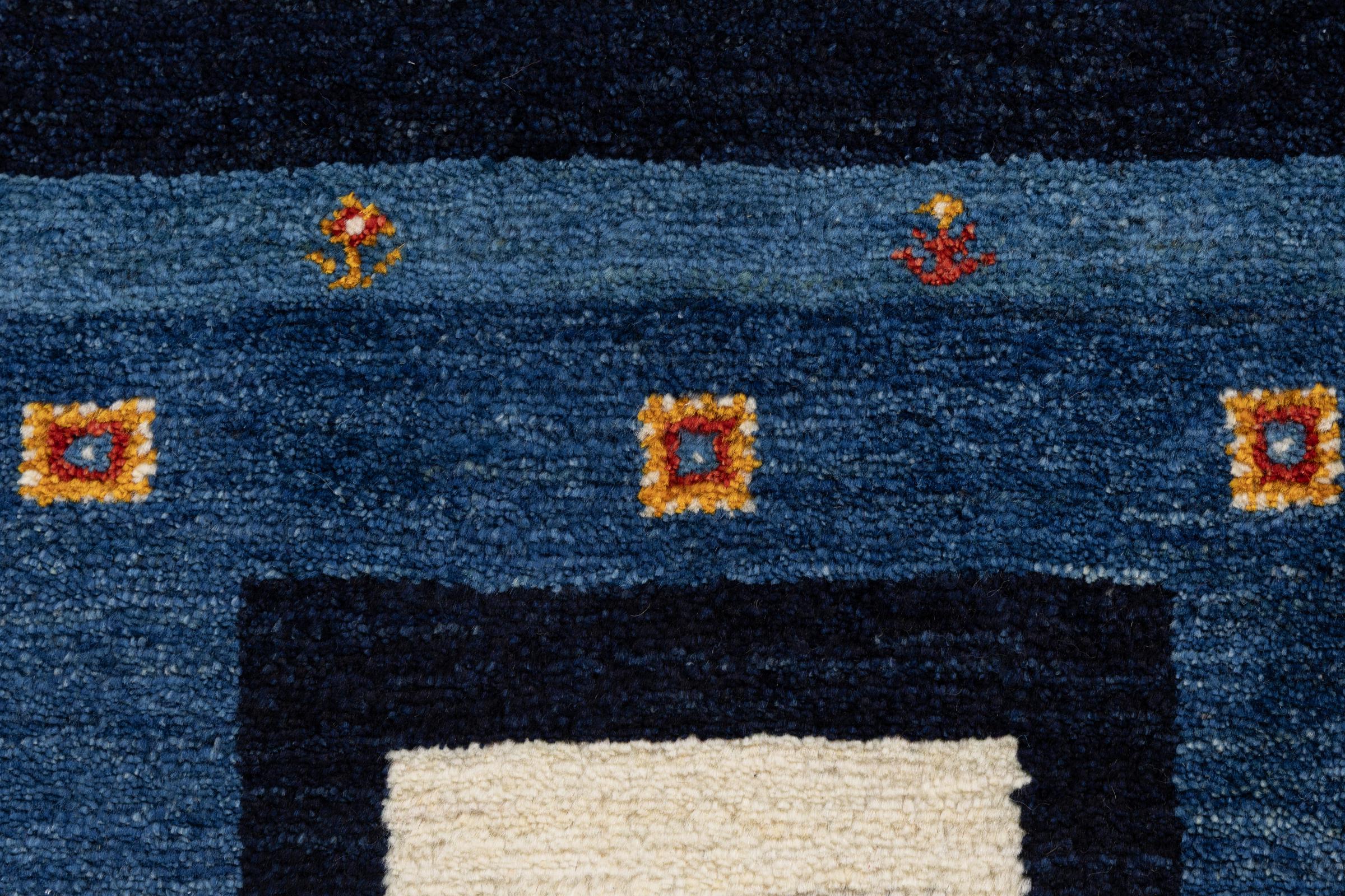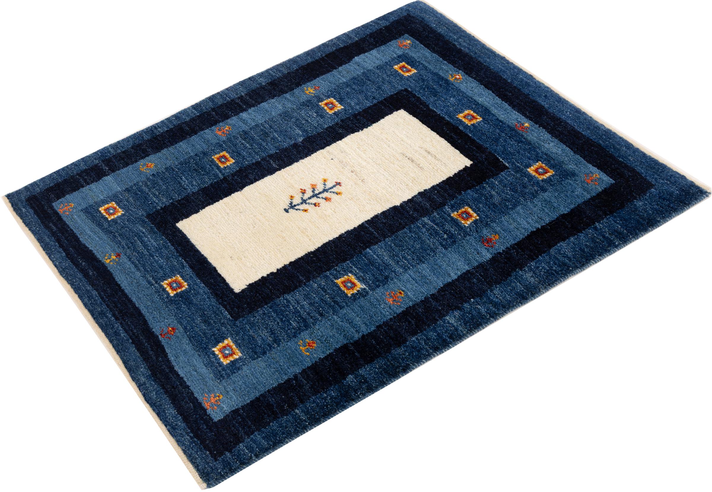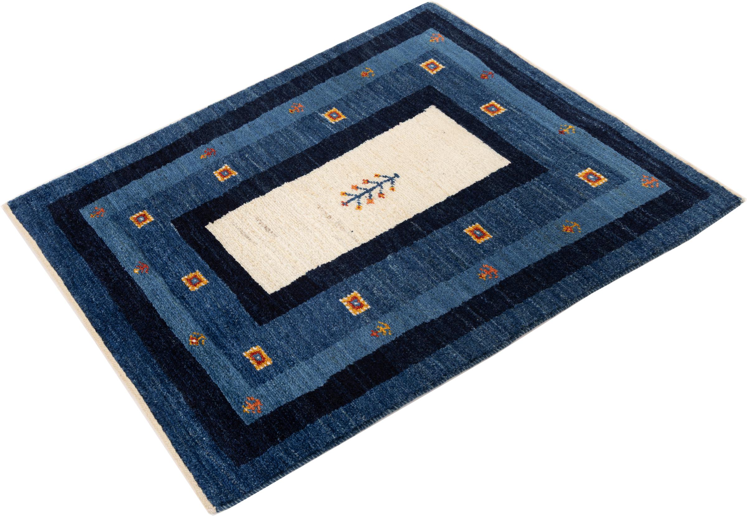 Den här vackra mattan är en persisk Gabbeh och är en av de högsta kvaliteten på Gabbeh-mattor. Mattorna är knutna av nomader eller semi-nomader i Iran med traditionellt hantverk. De enkla motiven och mönstren är mestadels inspirerade av nomaderna. Till exempel kan kameler, träd eller buskar hittas på traditionella mattor. Persiska Gabbeh-mattor är tillverkade av ull från lokala fårbesättningar. Ullen spinns därför mest för hand. Var och en av dessa orientaliska mattor förkroppsligar en unik karaktär av hundraårig kultur.