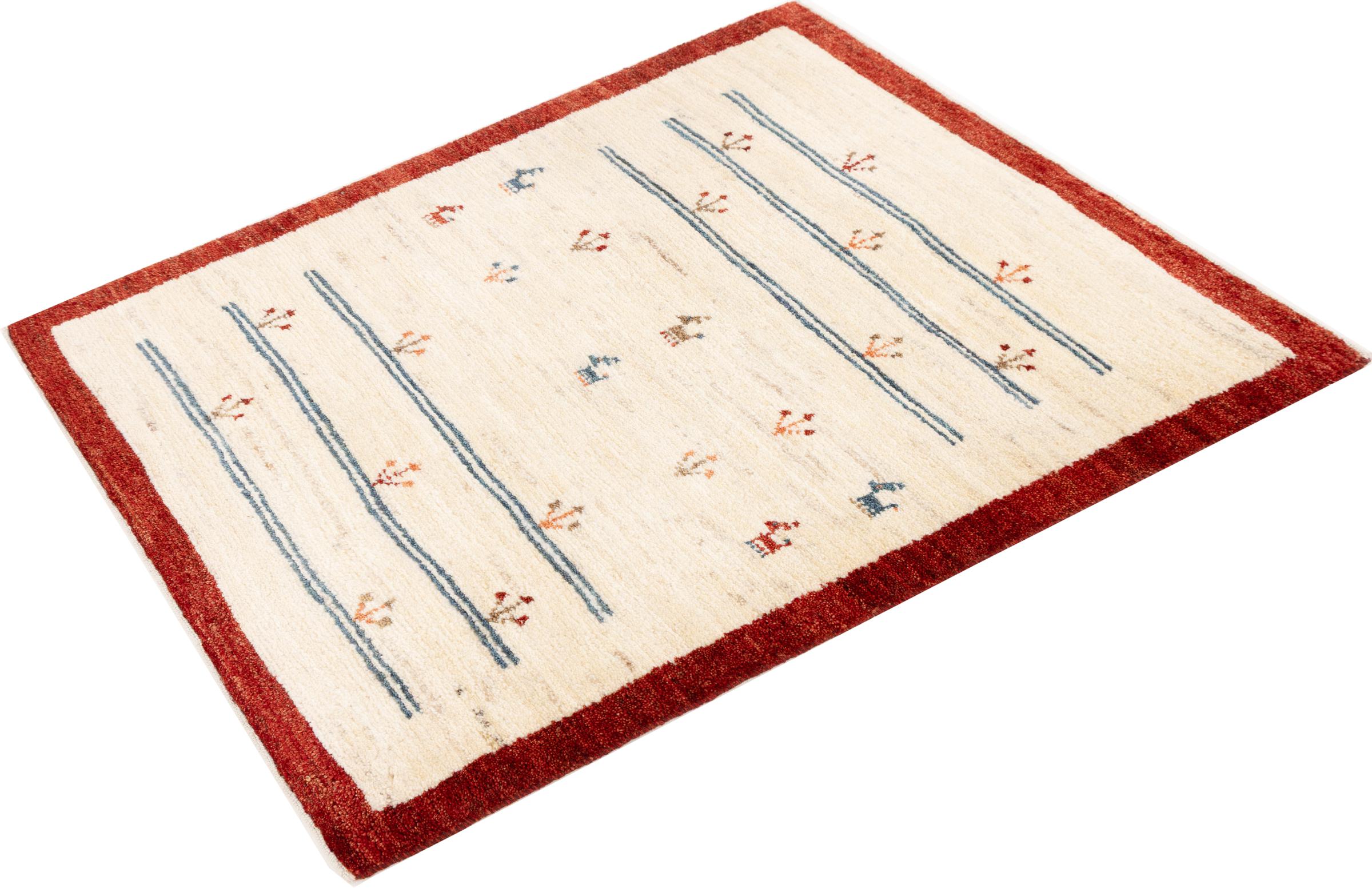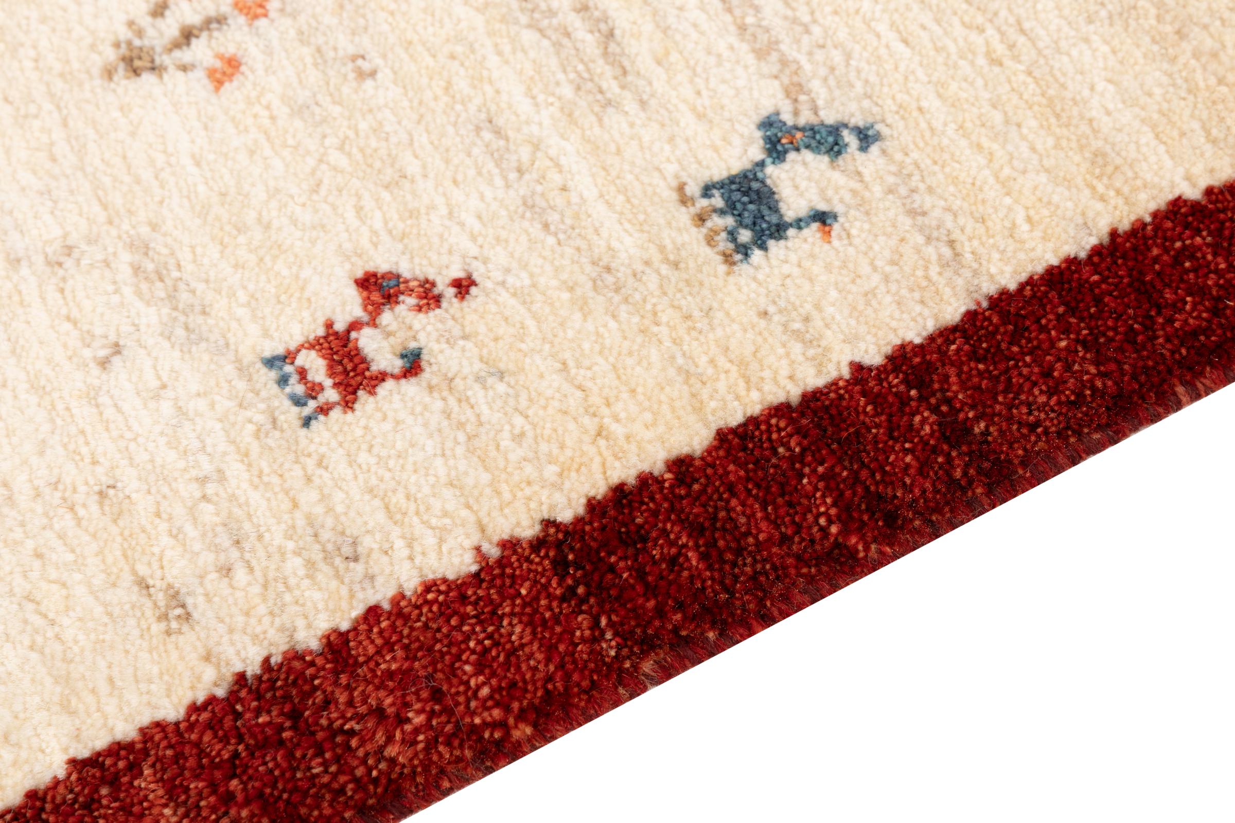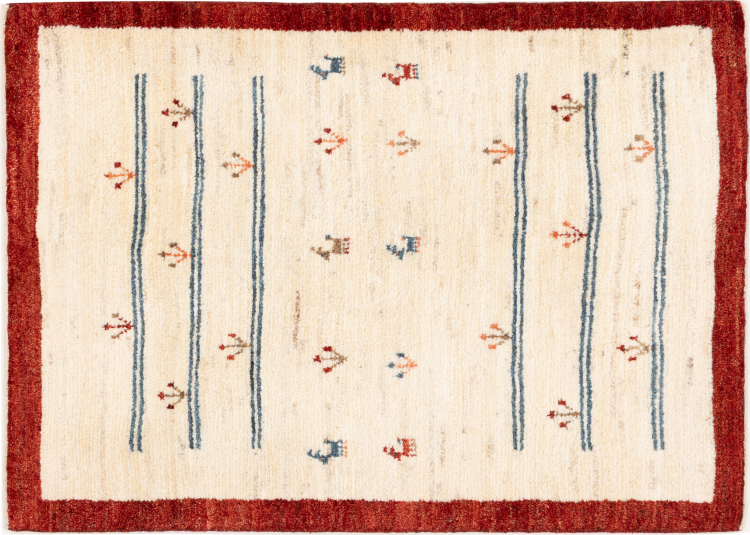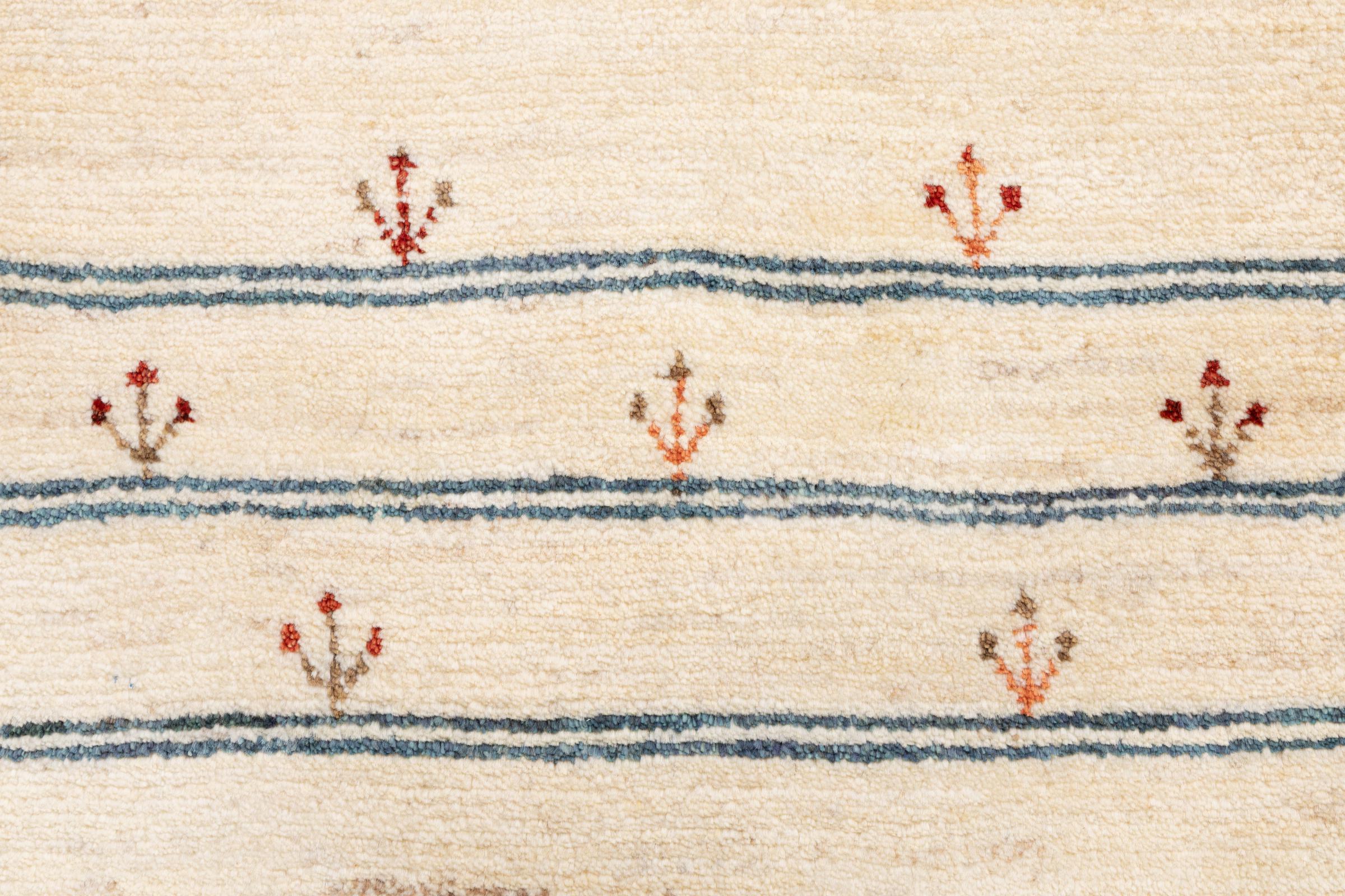 Den här vackra mattan är en persisk Gabbeh och är en av de högsta kvaliteten på Gabbeh-mattor. Mattorna är knutna av nomader eller semi-nomader i Iran med traditionellt hantverk. De enkla motiven och mönstren är mestadels inspirerade av nomaderna. Till exempel kan kameler, träd eller buskar hittas på traditionella mattor. Persiska Gabbeh-mattor är tillverkade av ull från lokala fårbesättningar. Ullen spinns därför mest för hand. Var och en av dessa orientaliska mattor förkroppsligar en unik karaktär av hundraårig kultur.