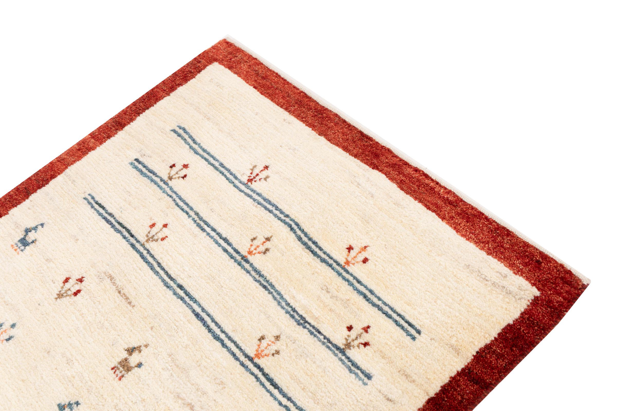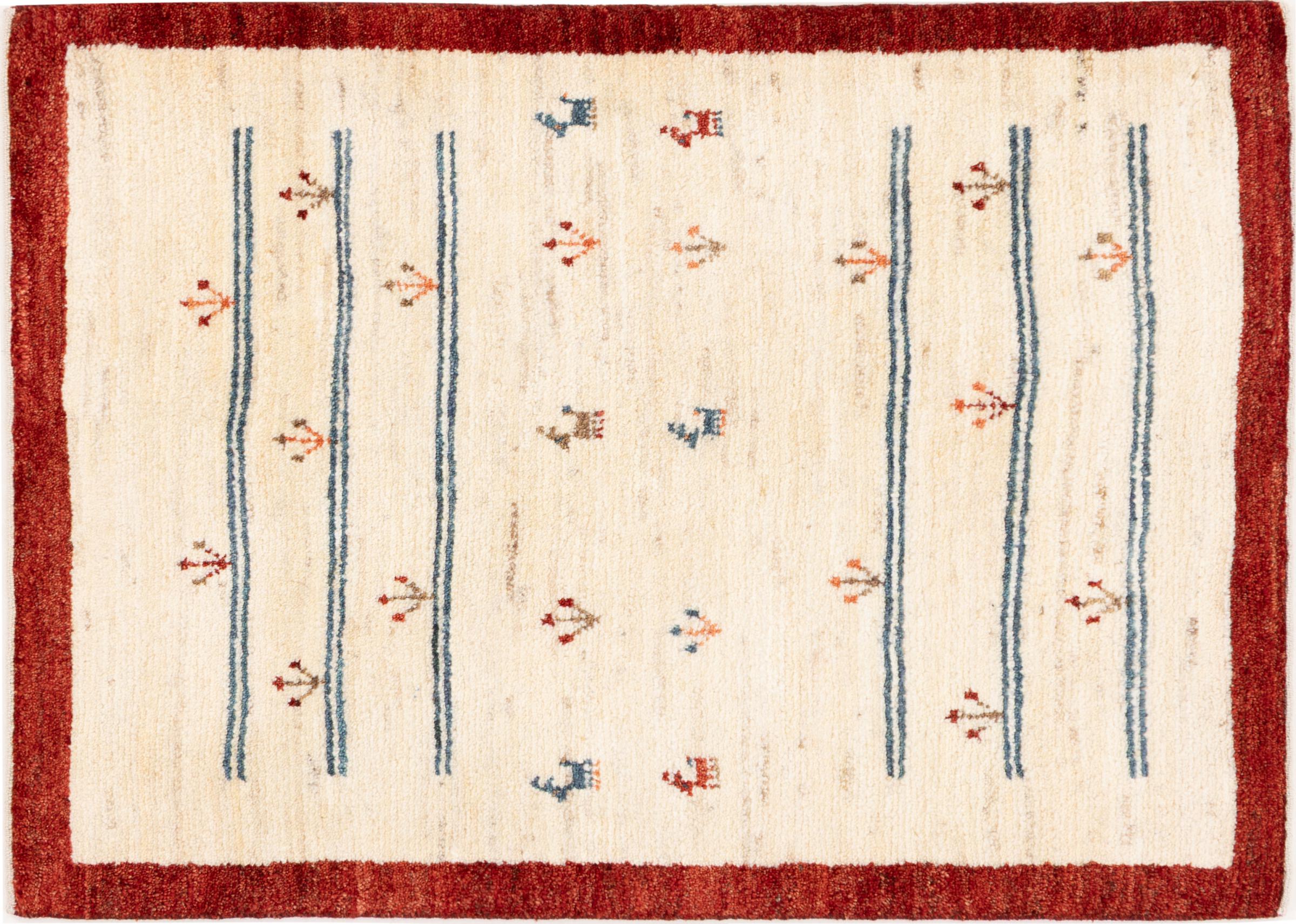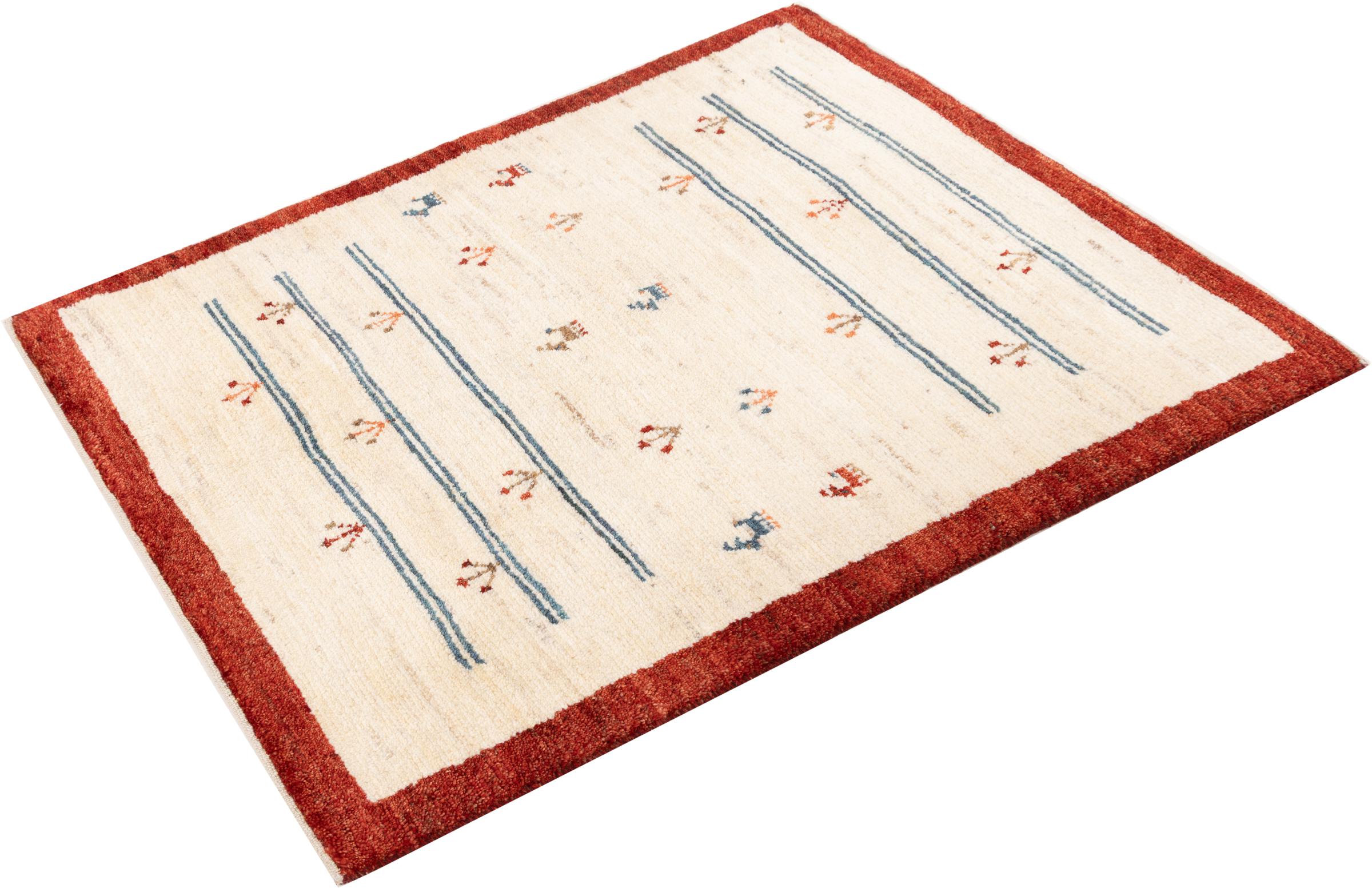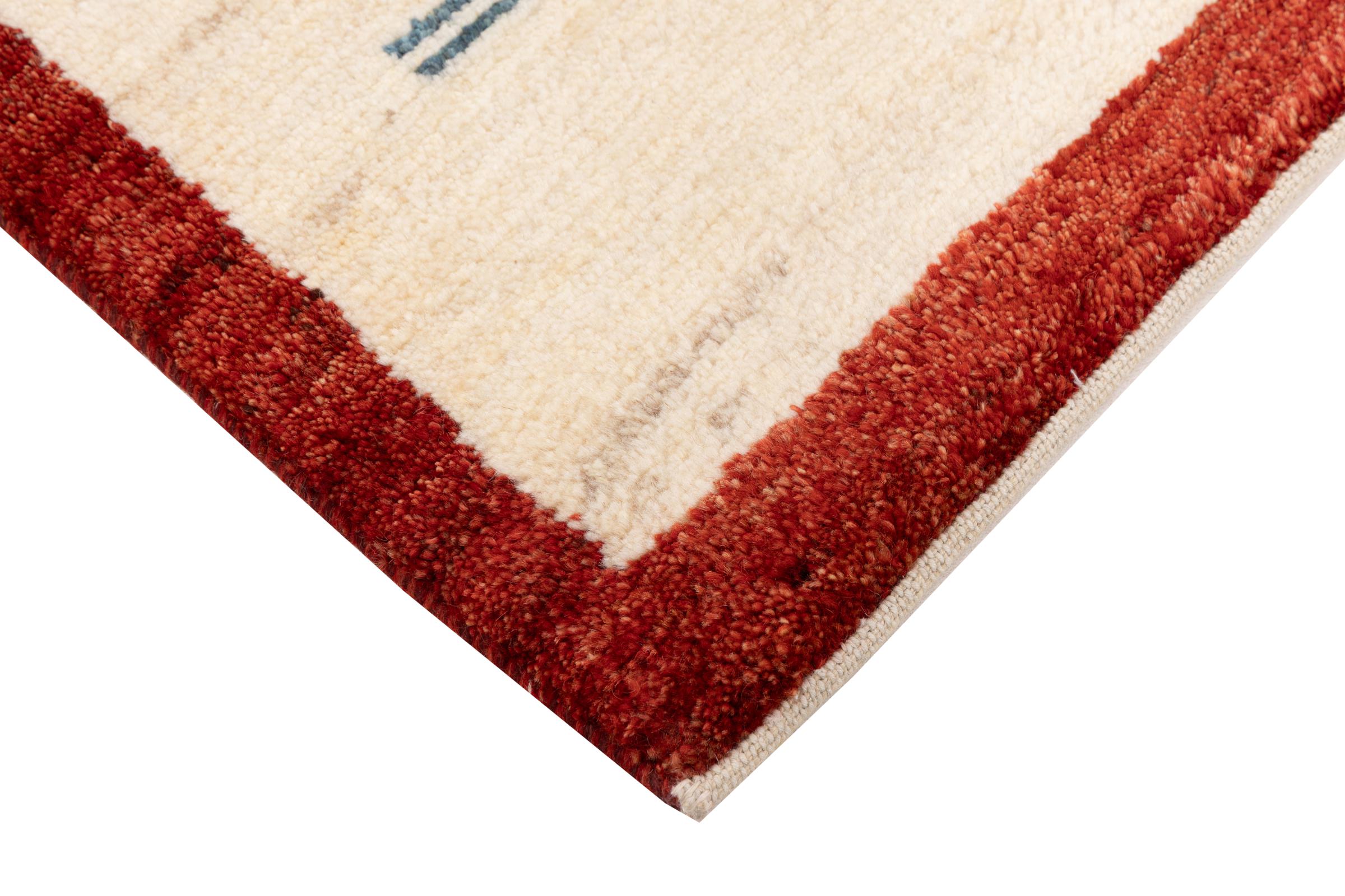 Den här vackra mattan är en persisk Gabbeh och är en av de högsta kvaliteten på Gabbeh-mattor. Mattorna är knutna av nomader eller semi-nomader i Iran med traditionellt hantverk. De enkla motiven och mönstren är mestadels inspirerade av nomaderna. Till exempel kan kameler, träd eller buskar hittas på traditionella mattor. Persiska Gabbeh-mattor är tillverkade av ull från lokala fårbesättningar. Ullen spinns därför mest för hand. Var och en av dessa orientaliska mattor förkroppsligar en unik karaktär av hundraårig kultur.