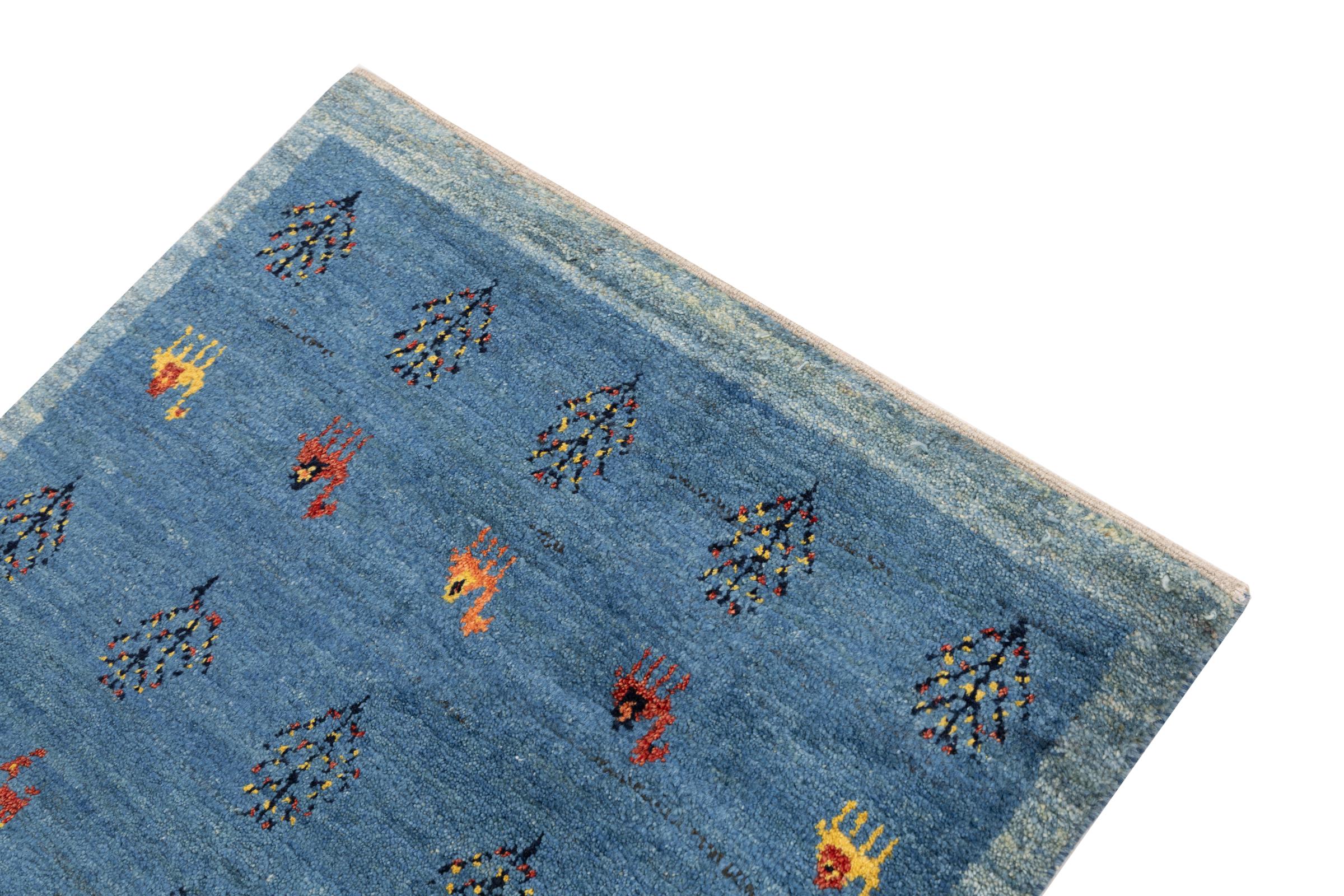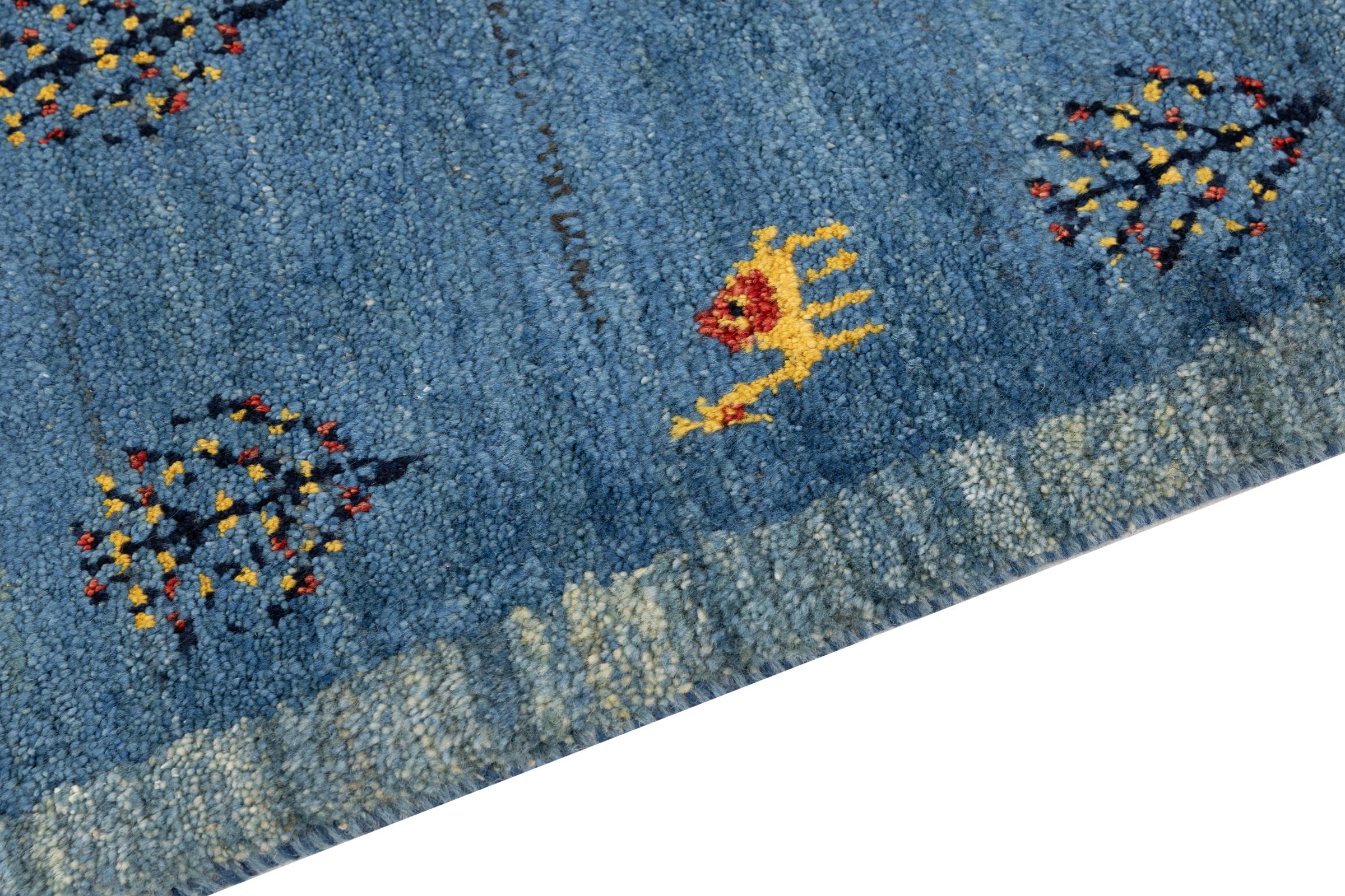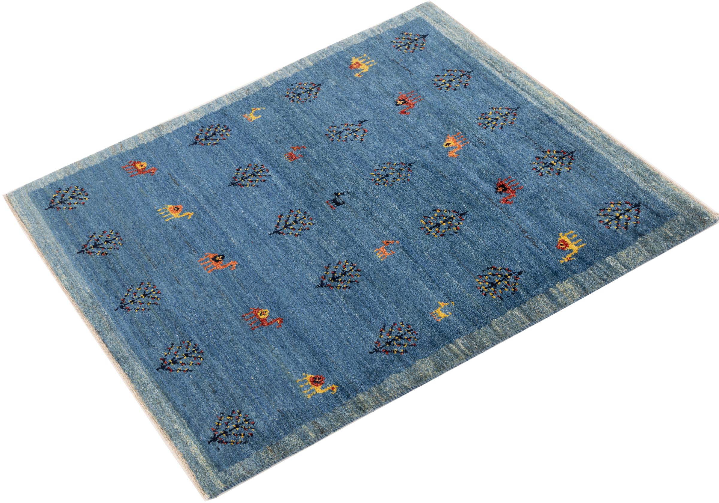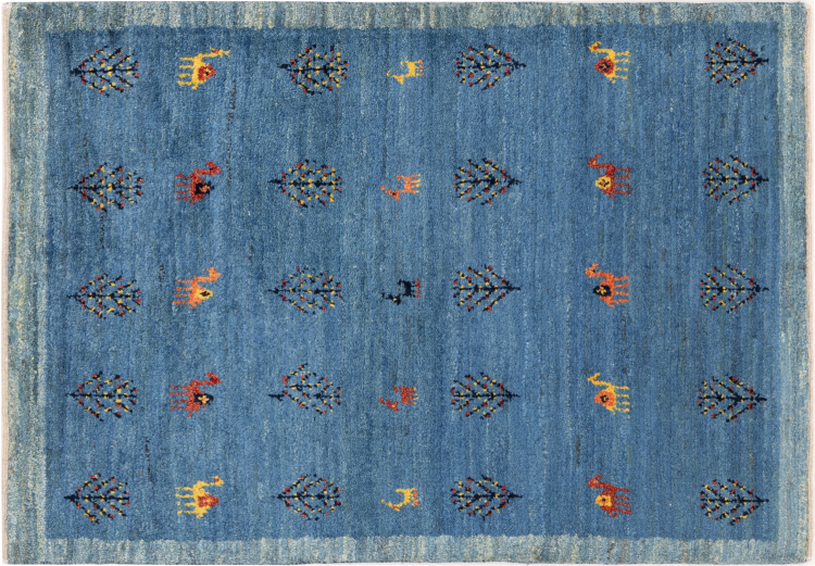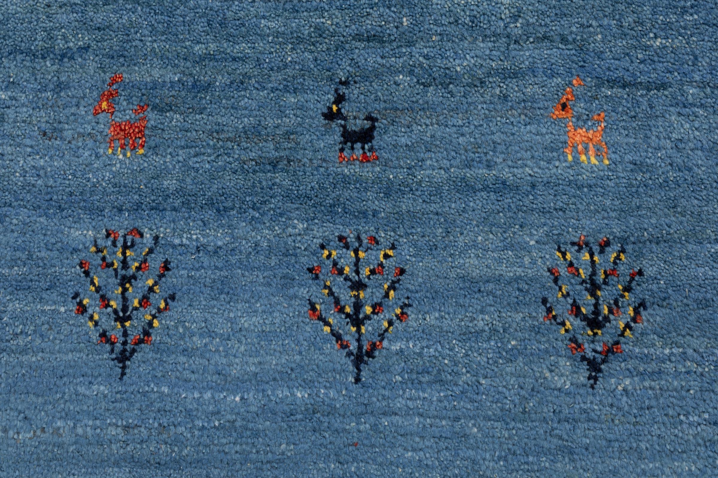 Den här vackra mattan är en persisk Gabbeh och är en av de högsta kvaliteten på Gabbeh-mattor. Mattorna är knutna av nomader eller semi-nomader i Iran med traditionellt hantverk. De enkla motiven och mönstren är mestadels inspirerade av nomaderna. Till exempel kan kameler, träd eller buskar hittas på traditionella mattor. Persiska Gabbeh-mattor är tillverkade av ull från lokala fårbesättningar. Ullen spinns därför mest för hand. Var och en av dessa orientaliska mattor förkroppsligar en unik karaktär av hundraårig kultur.