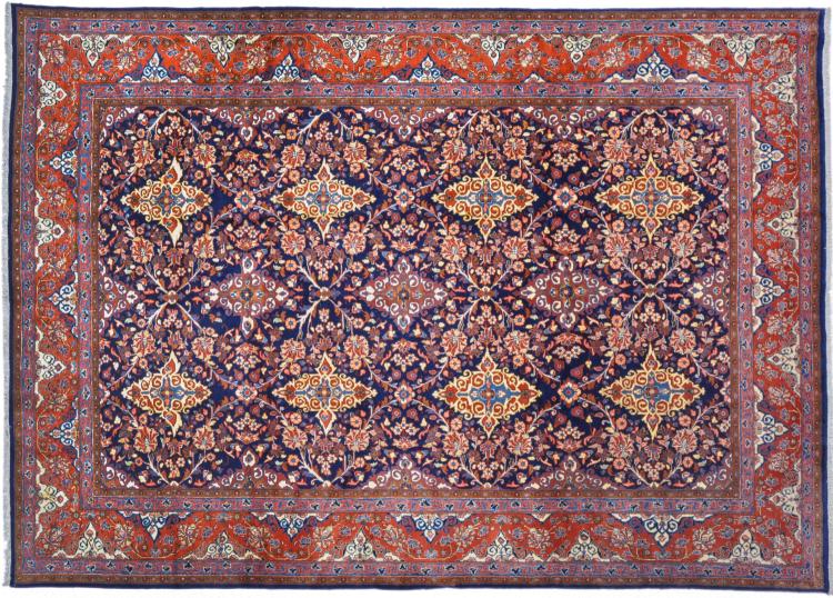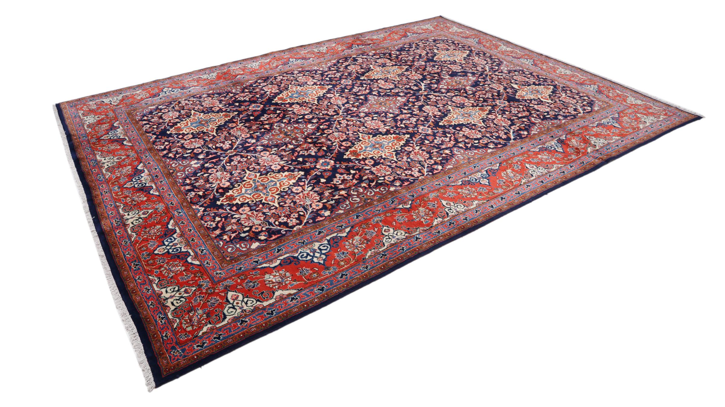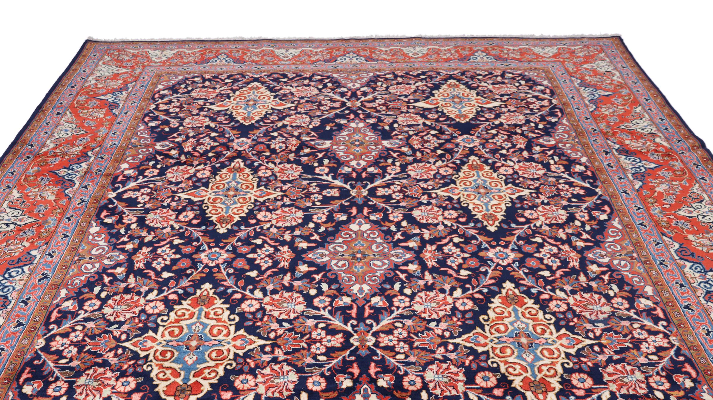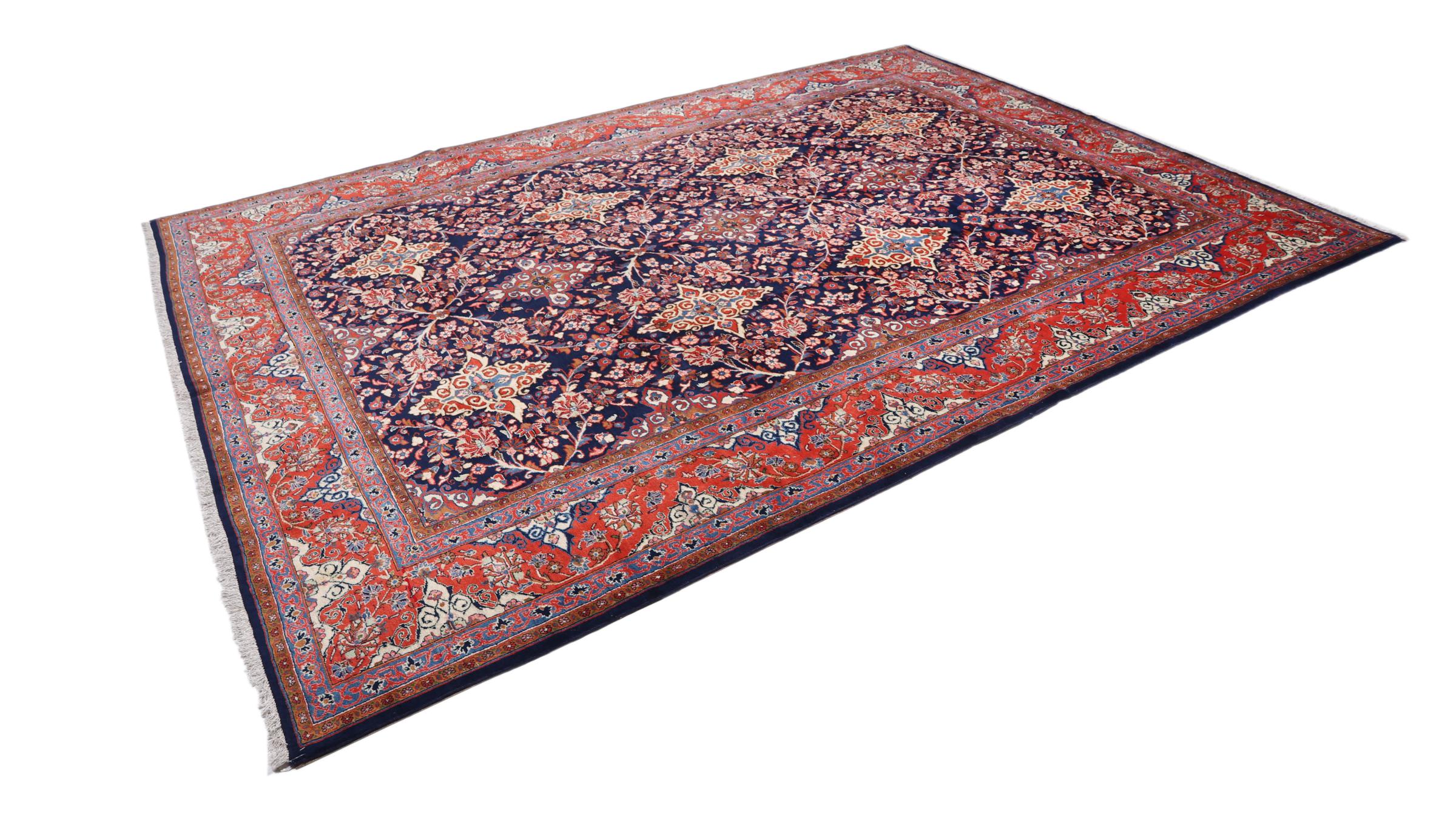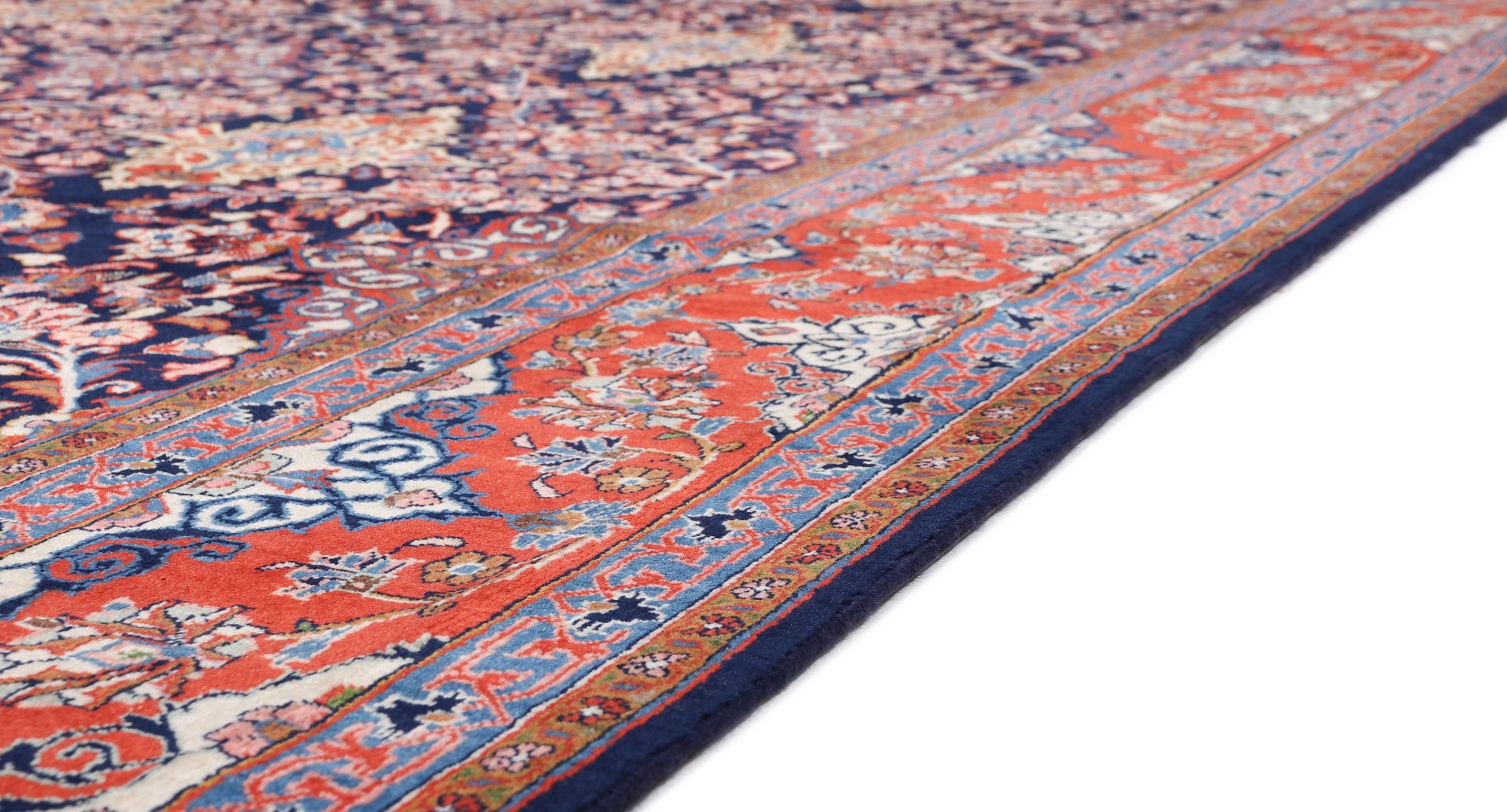 Mattans ID: 23521500918831 Storlek: 360x258 cm Tjocklek: ap. 5 mm Knuttäthet: 128 000 - 160 000 / m² Tillverkning: Knuten för hand Lugg: Ull Varp: Bomull Skick / Bevarande: Perfekt Ursprung: Persien / Iran Ålder: Antik, äldre än 80 år Vikt: ap. 28 kg I lager: Unik - Endast 1 i lager