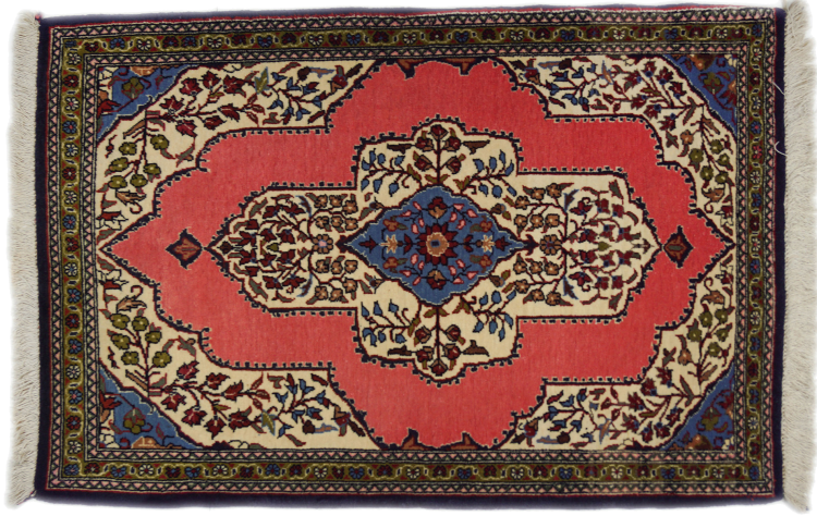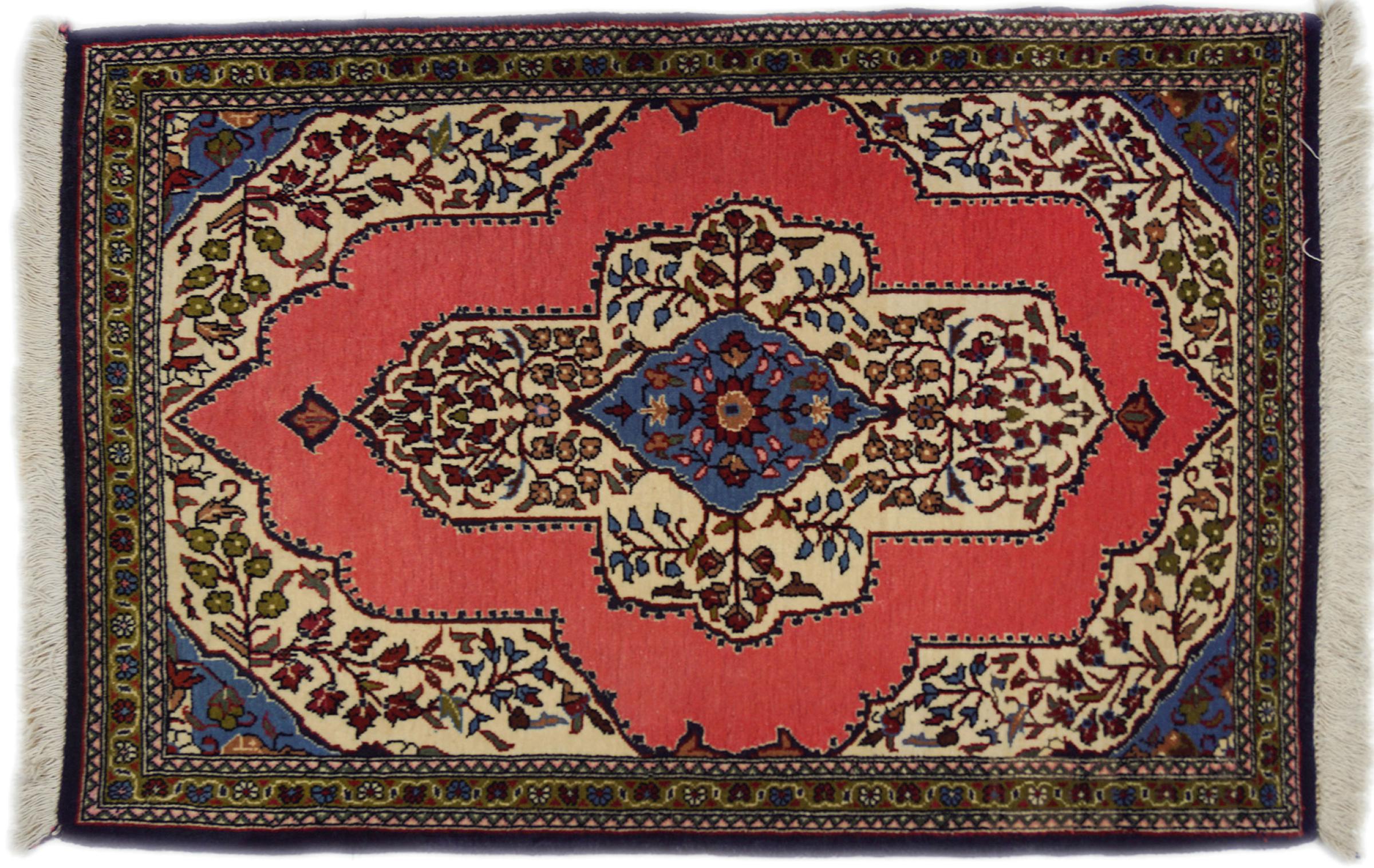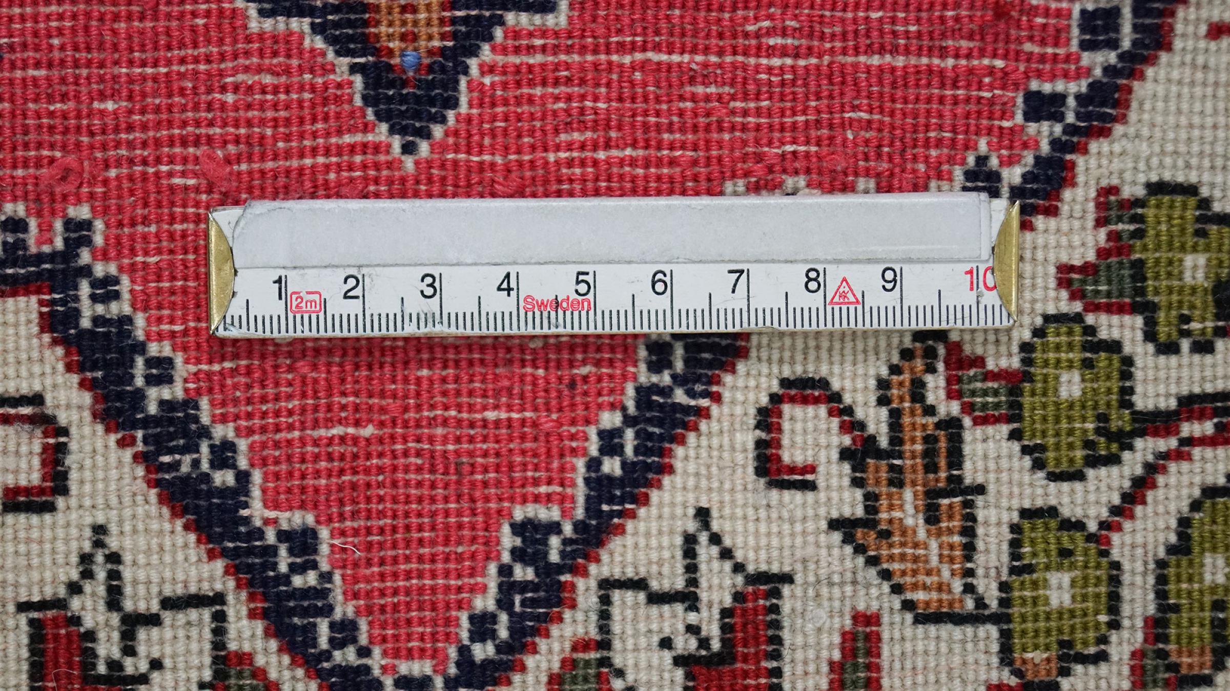 Mattans ID: 316108002950586 Storlek: 94x61 cm Tjocklek: ap. 10 mm Knuttäthet: 410 000 - 450 000 / m² Tillverkning: Knuten för hand Lugg: Handspunnen ull Varp: Bomull Ursprung: Persien / Iran Ålder: Gammal, 30-50 år Vikt: ap. 2 kg I lager: Unik - Endast 1 i lager