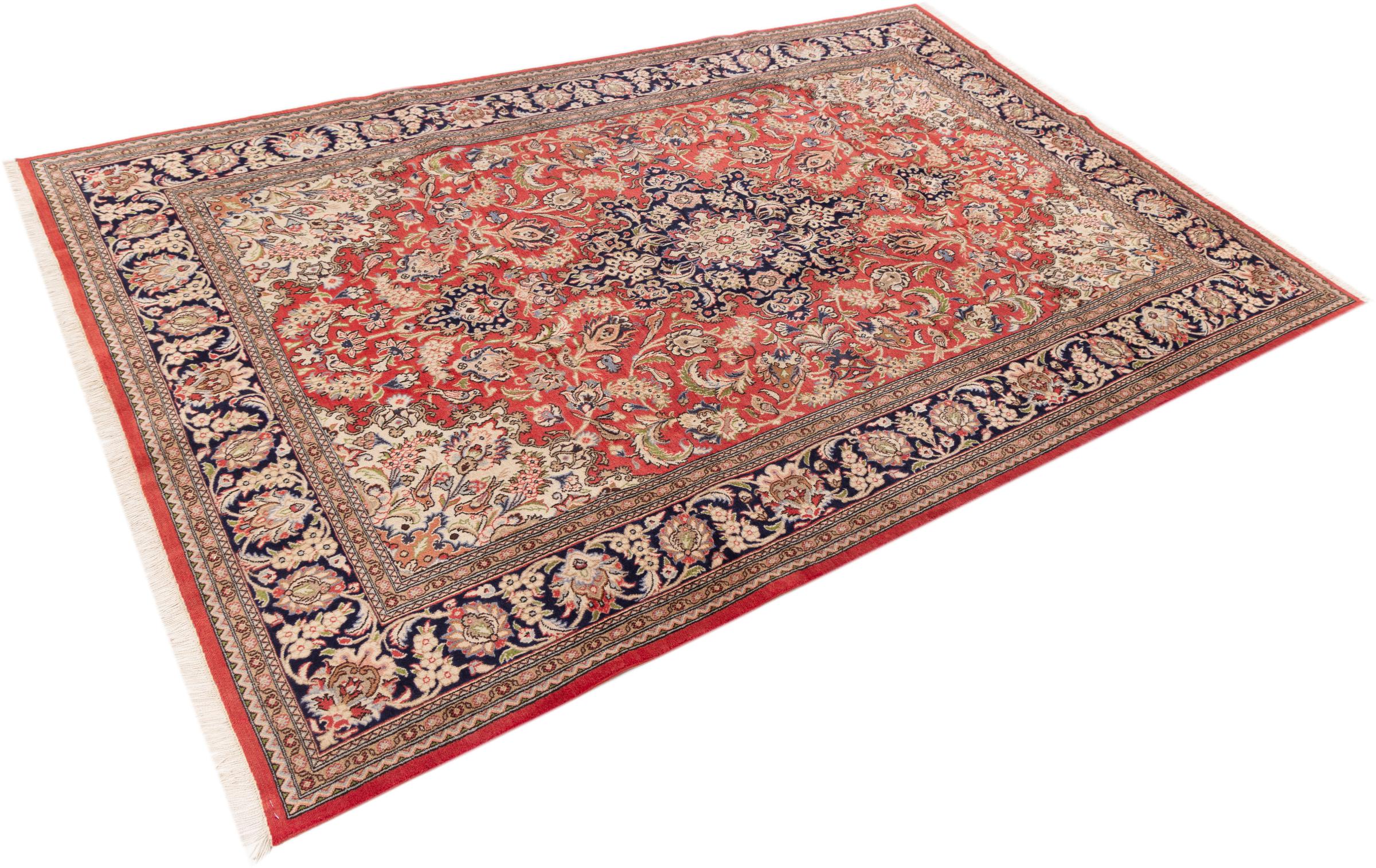 Det här mattan kommer från Iran (tidigare Persien) och är förmodligen det högsta rykte bland alla handknutna mattor som persisk matta. Ingen region ser tillbaka på en jämförbar lång tradition inom mattvätning än Iran. Så här kommer de finaste och mest utarbetade mattorna hit. Den persiska knutens robusthet, hållbarhet och kvalitet är fortfarande oöverträffad idag. Persiska mattor namnges vanligtvis efter din ursprungsregion. Så både en Nain, en Ghom och en Isfahan-matta kommer från staden med samma namn i Iran.