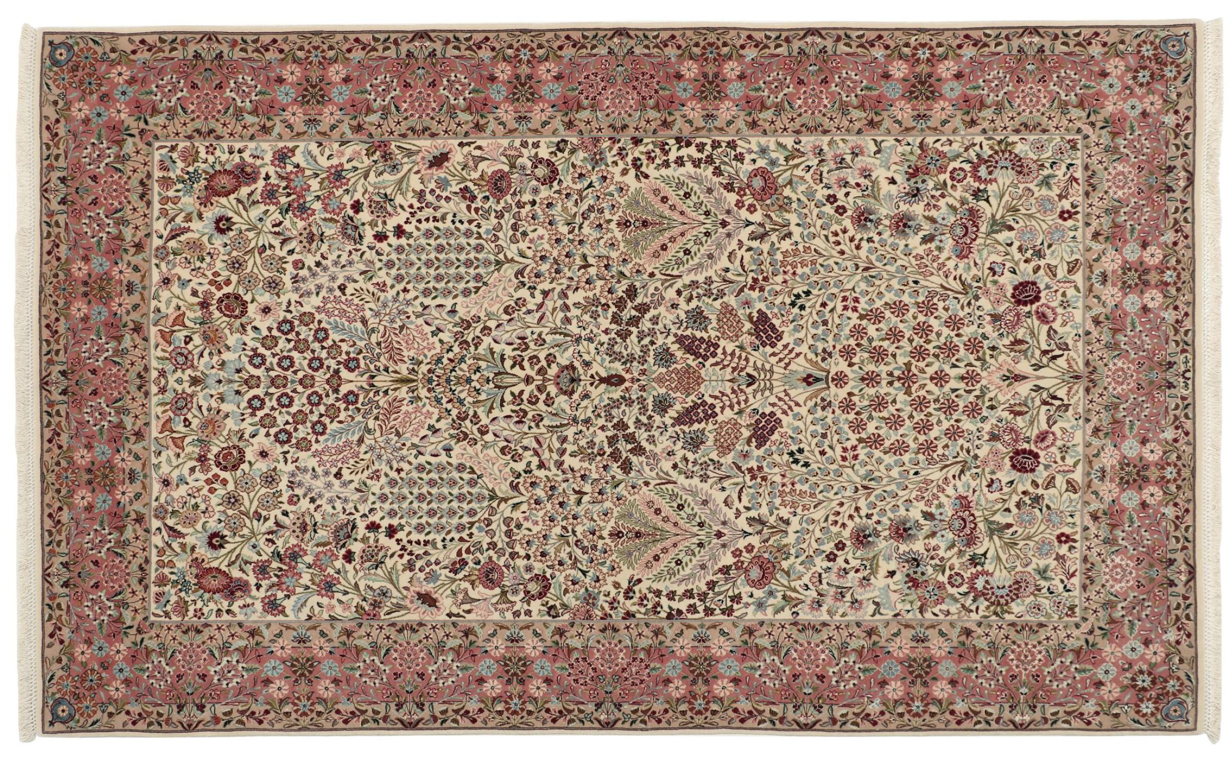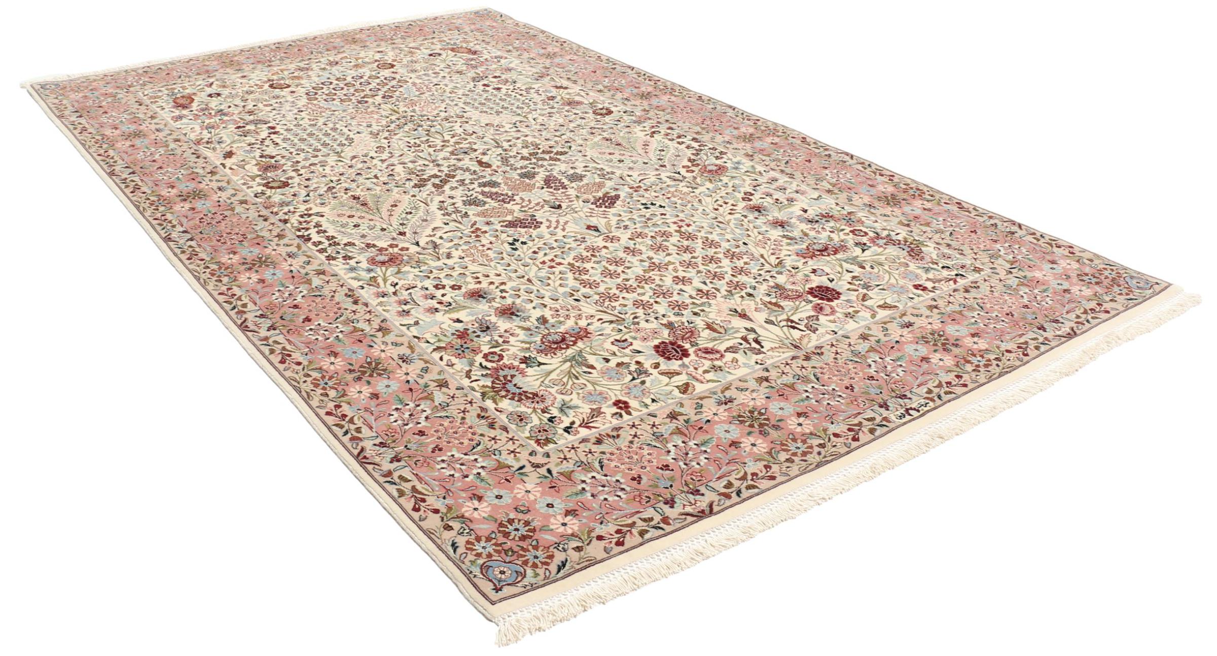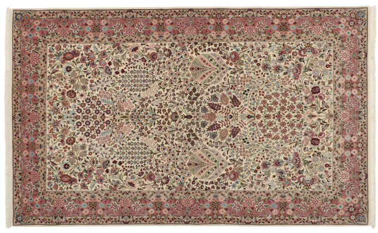 Mattans ID: 30943800182900 Storlek: 221x132 cm Tjocklek: ap. 10 mm Knuttäthet: 810 000 / m² Tillverkning: Knuten för hand Lugg: Ull med silke Varp: Silke Ursprung: Persien / Iran Ålder: Ny Vikt: ap. 10 kg I lager: Unik - Endast 1 i lager