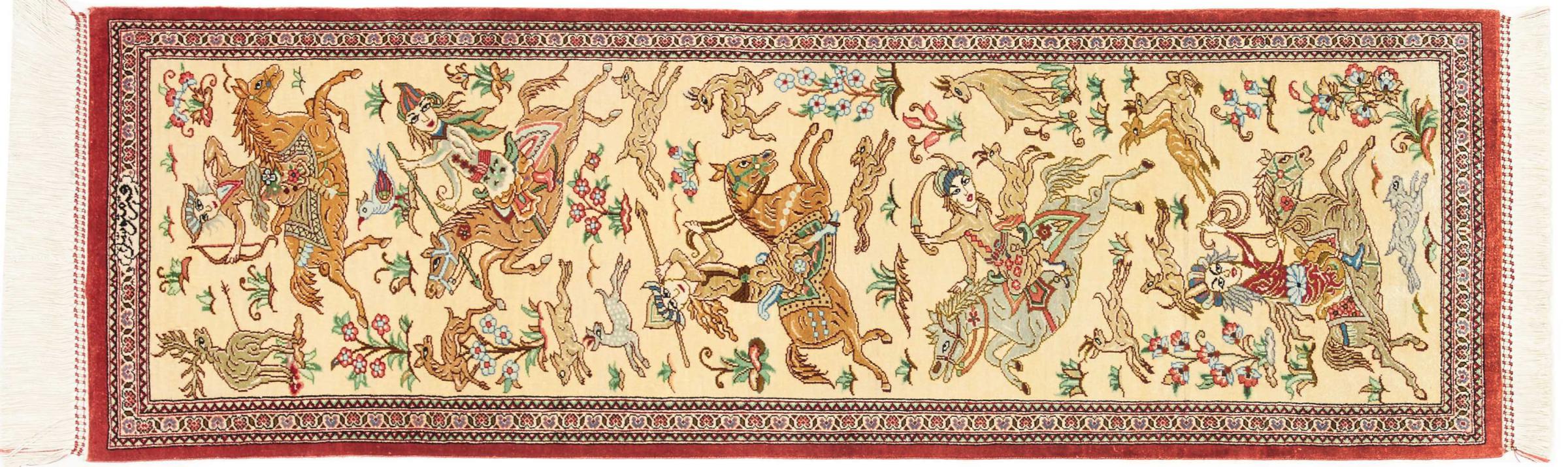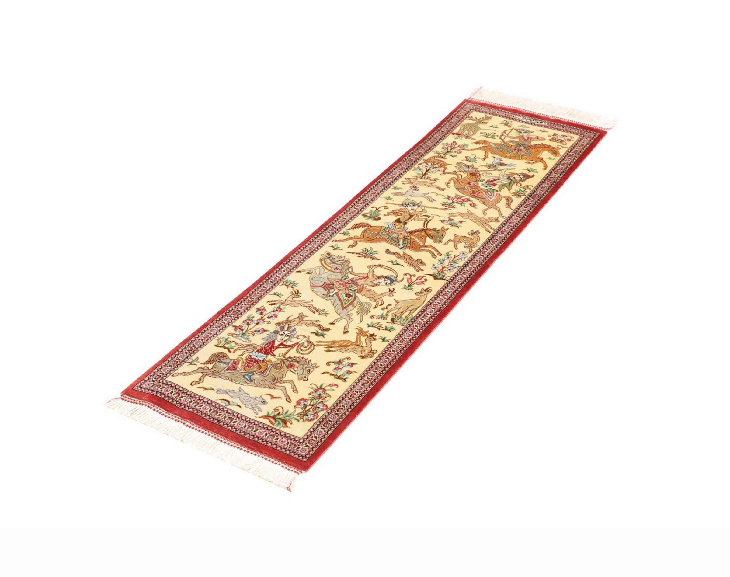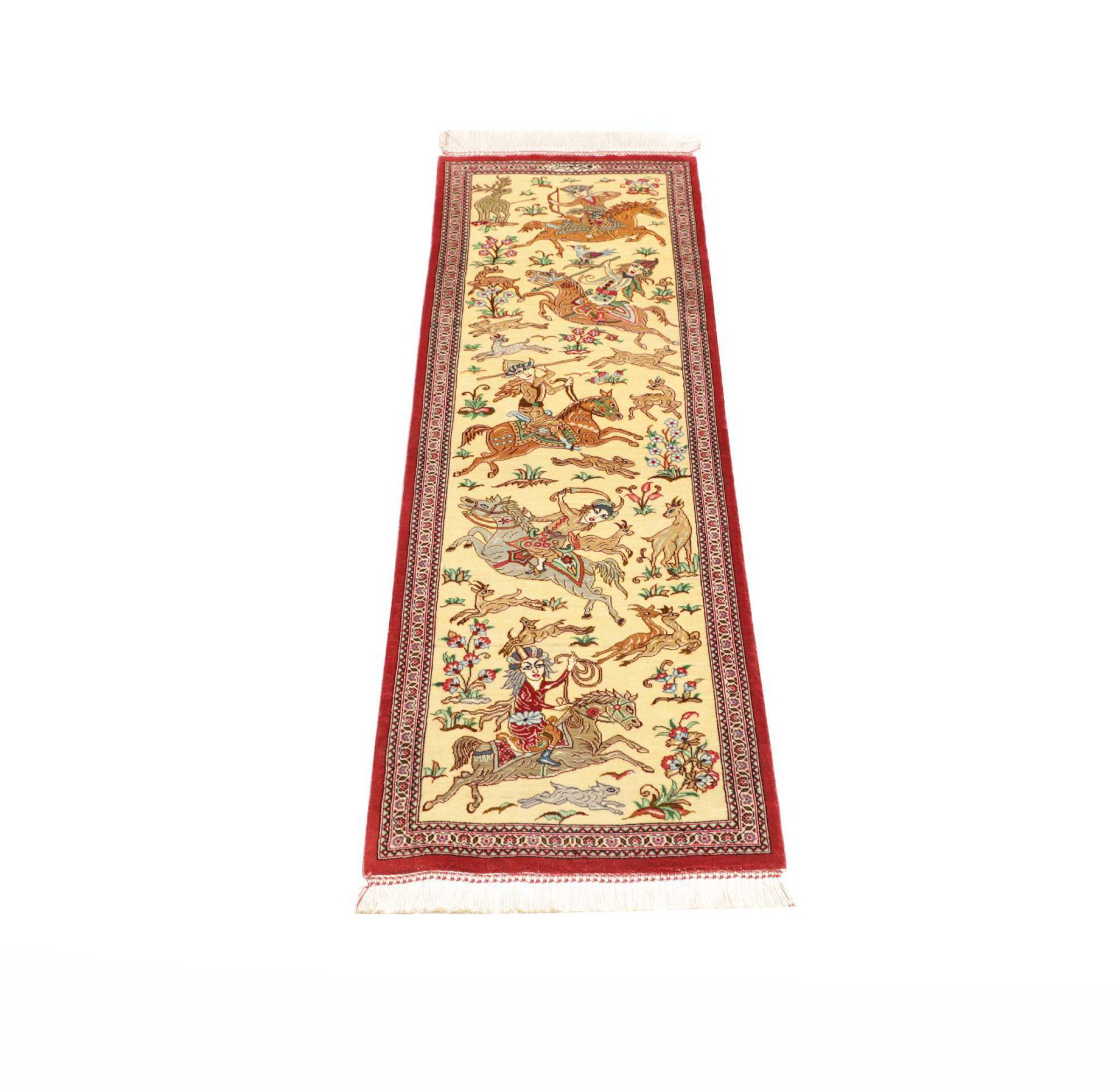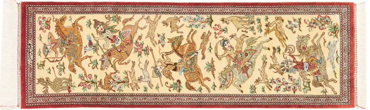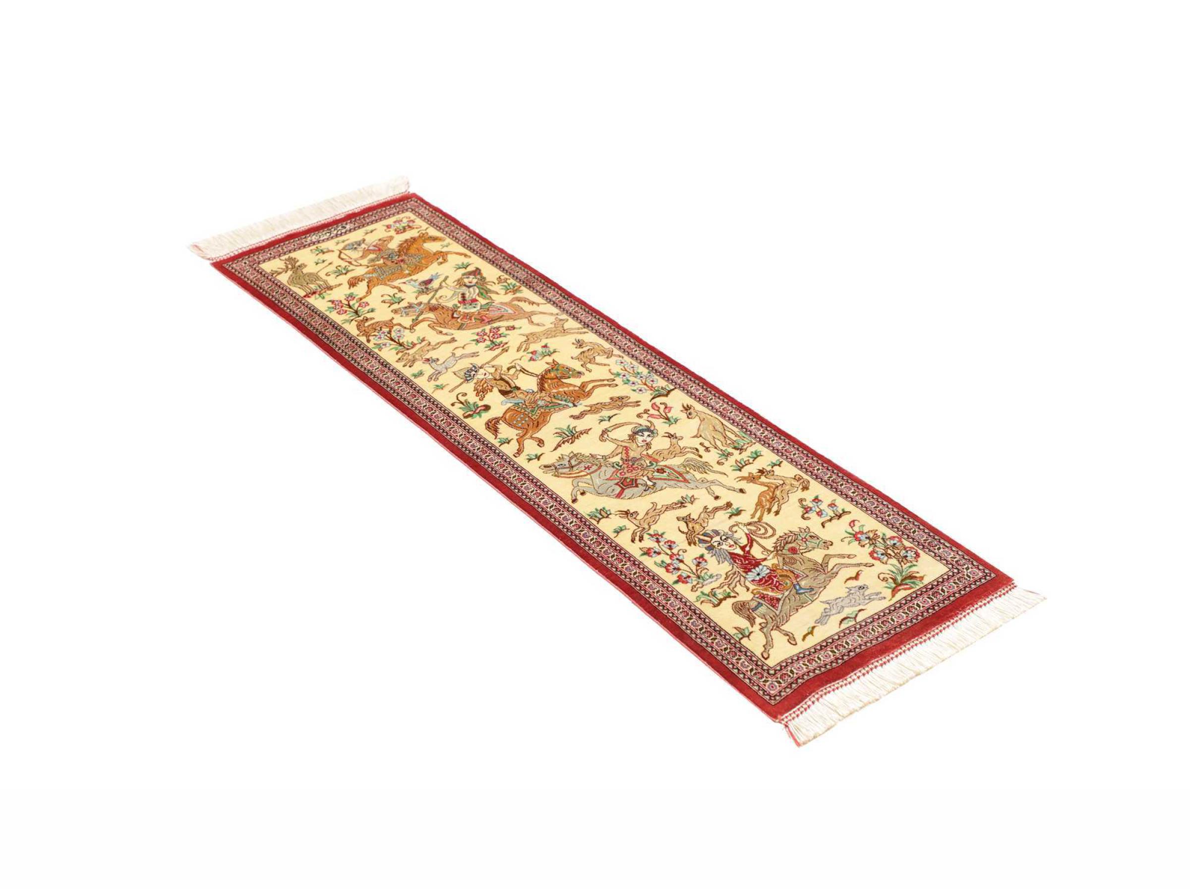 Mattans ID: 306188001992052 Storlek: 129x39 cm Tjocklek: ap. 4 mm Knuttäthet: 800 000 / m² Tillverkning: Knuten för hand Lugg: Silke Varp: Bomull Ursprung: Persien / Iran Ålder: Ny Vikt: ap. 1 kg I lager: Unik - Endast 1 i lager