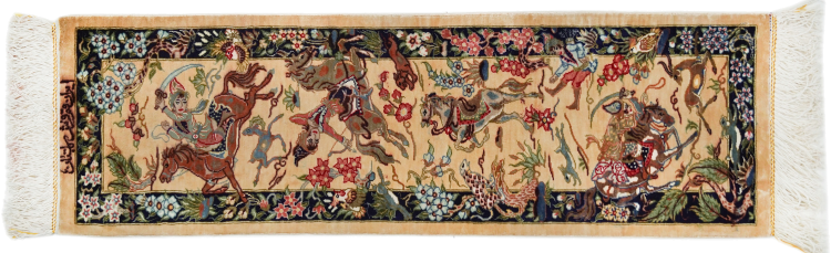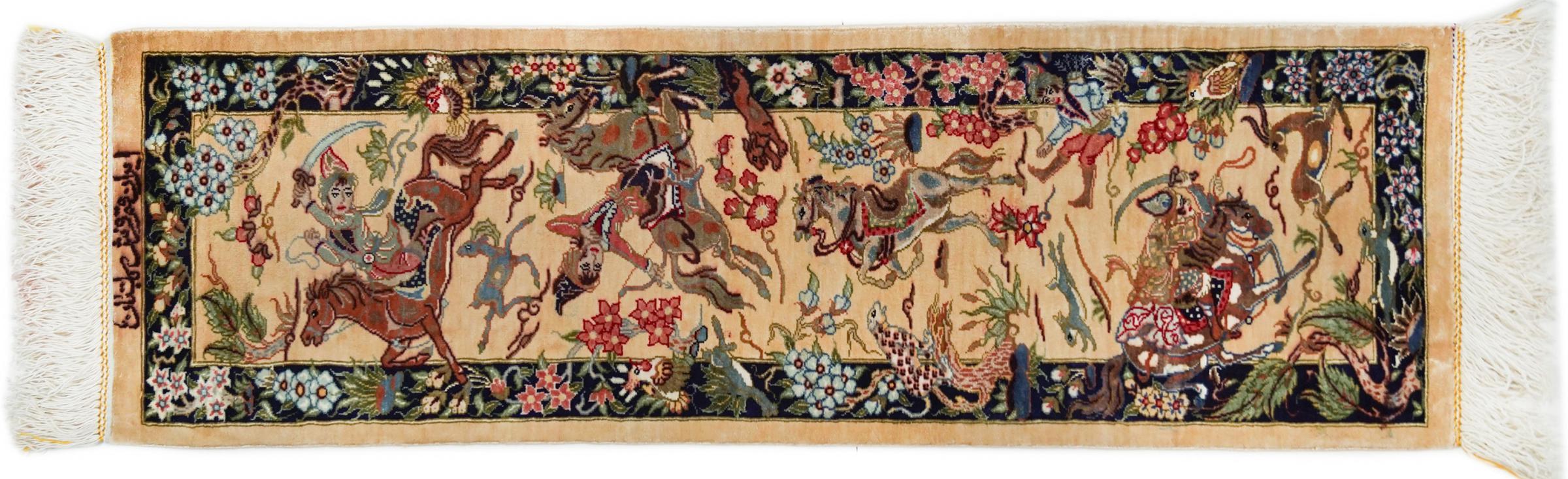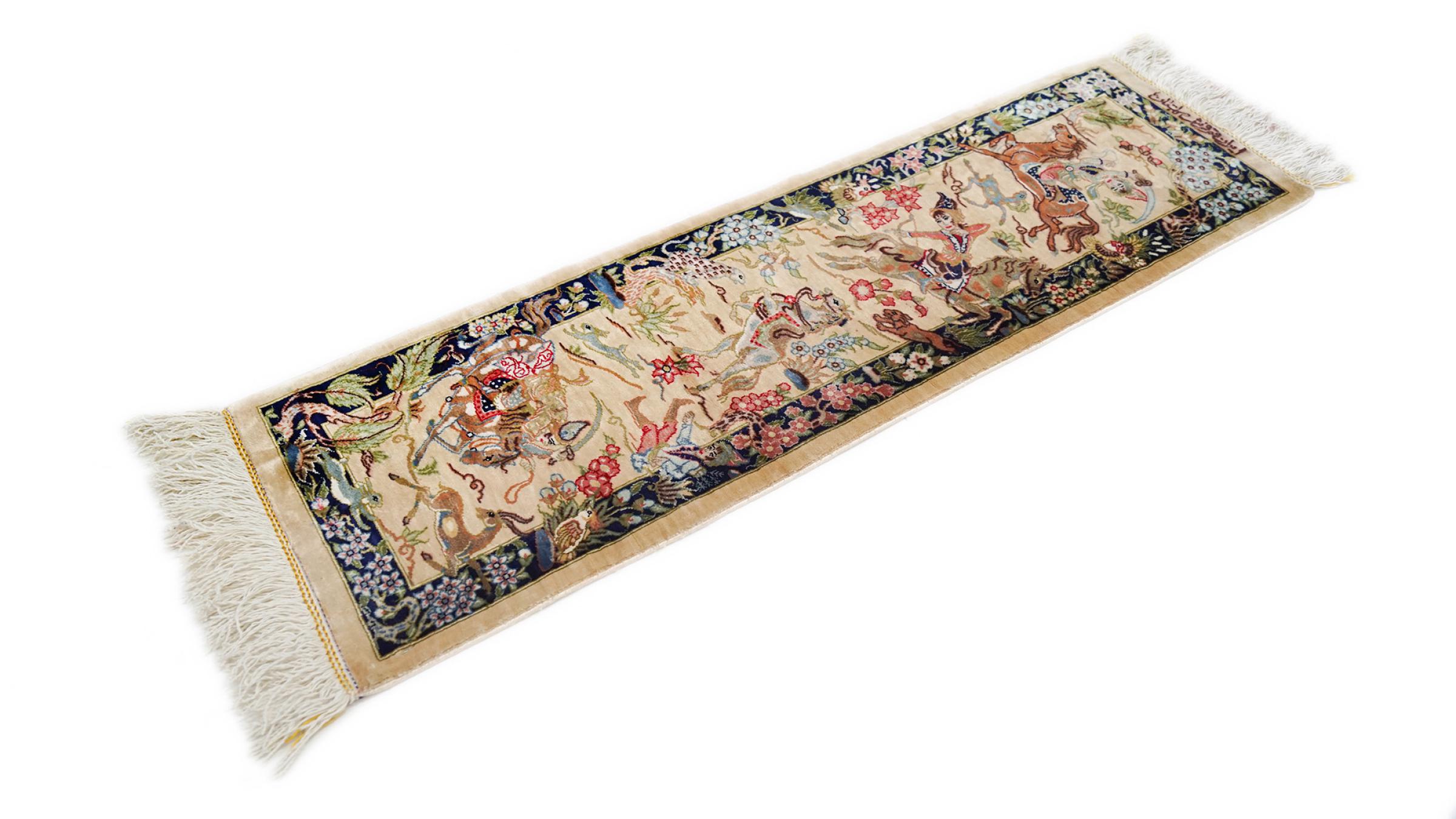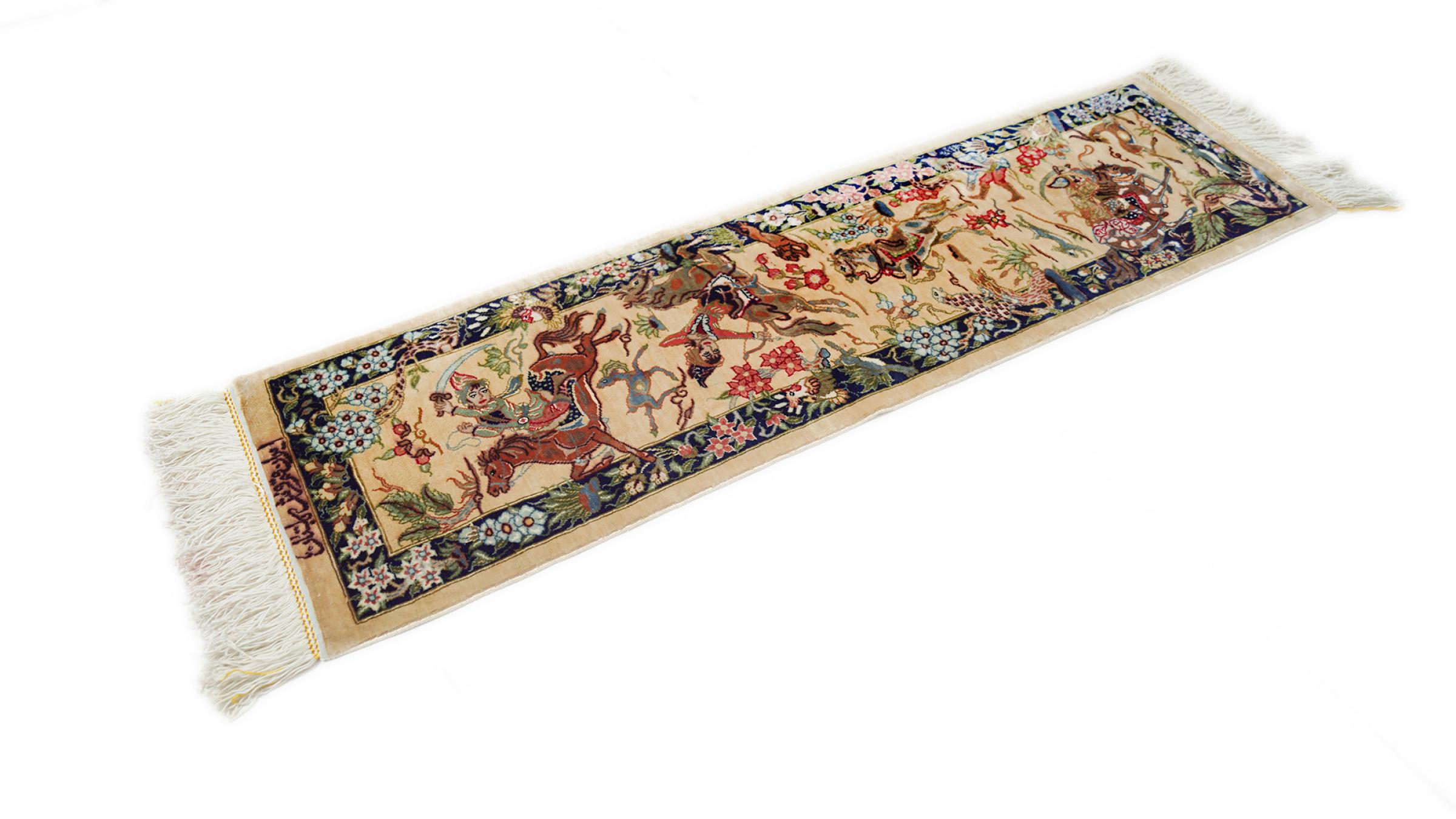 Mattans ID: 316097003879098 Storlek: 87x25 cm Tjocklek: ap. 4 mm Knuttäthet: 1 000 000 / m² Tillverkning: Knuten för hand Lugg: Silke Varp: Silke Ursprung: Persien / Iran Ålder: Ny Vikt: ap. 0 kg I lager: Unik - Endast 1 i lager