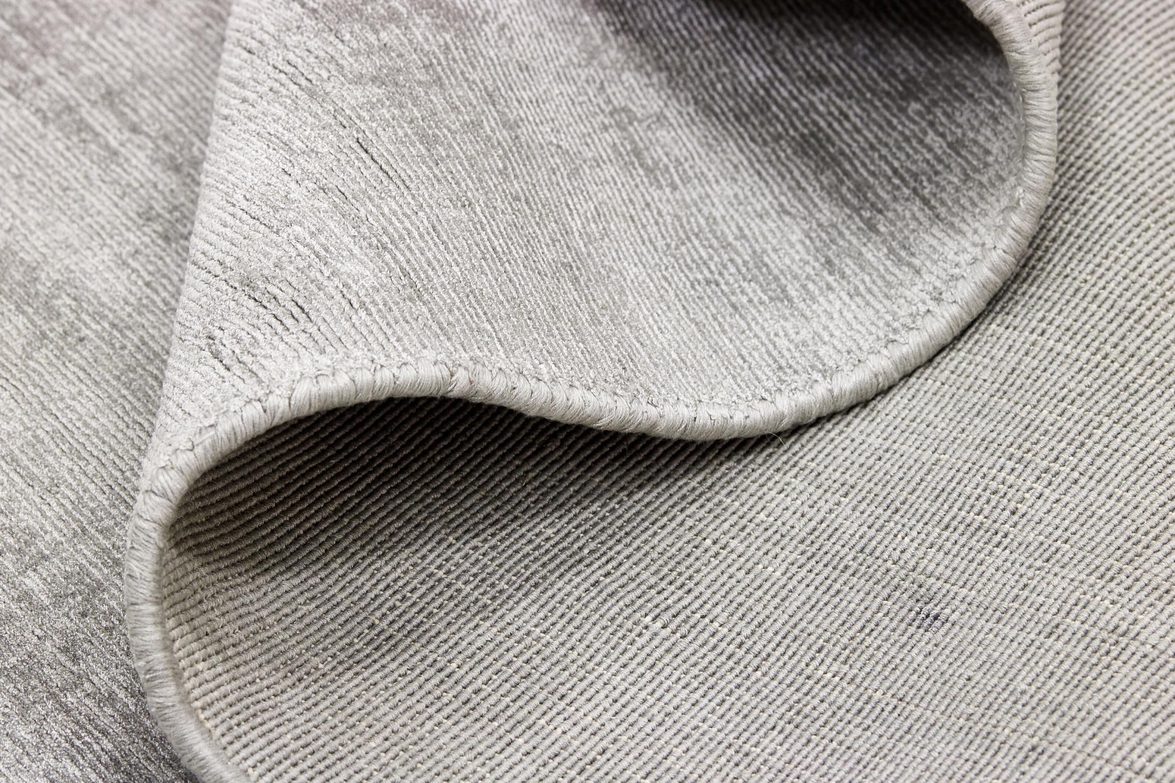 Mattans ID: 6996800345782 Storlek: 199x139 cm Tjocklek: ap. 12 mm Knuttäthet: 96 000 - 120 000 / m² Tillverkning: Loom handknuten Lugg: viskos Varp: Bomull Ursprung: Indien Ålder: Ny Vikt: ap. 11 kg Också känd som Minimalistisches Design, weiche Teppiche, Teppich mit Glanz