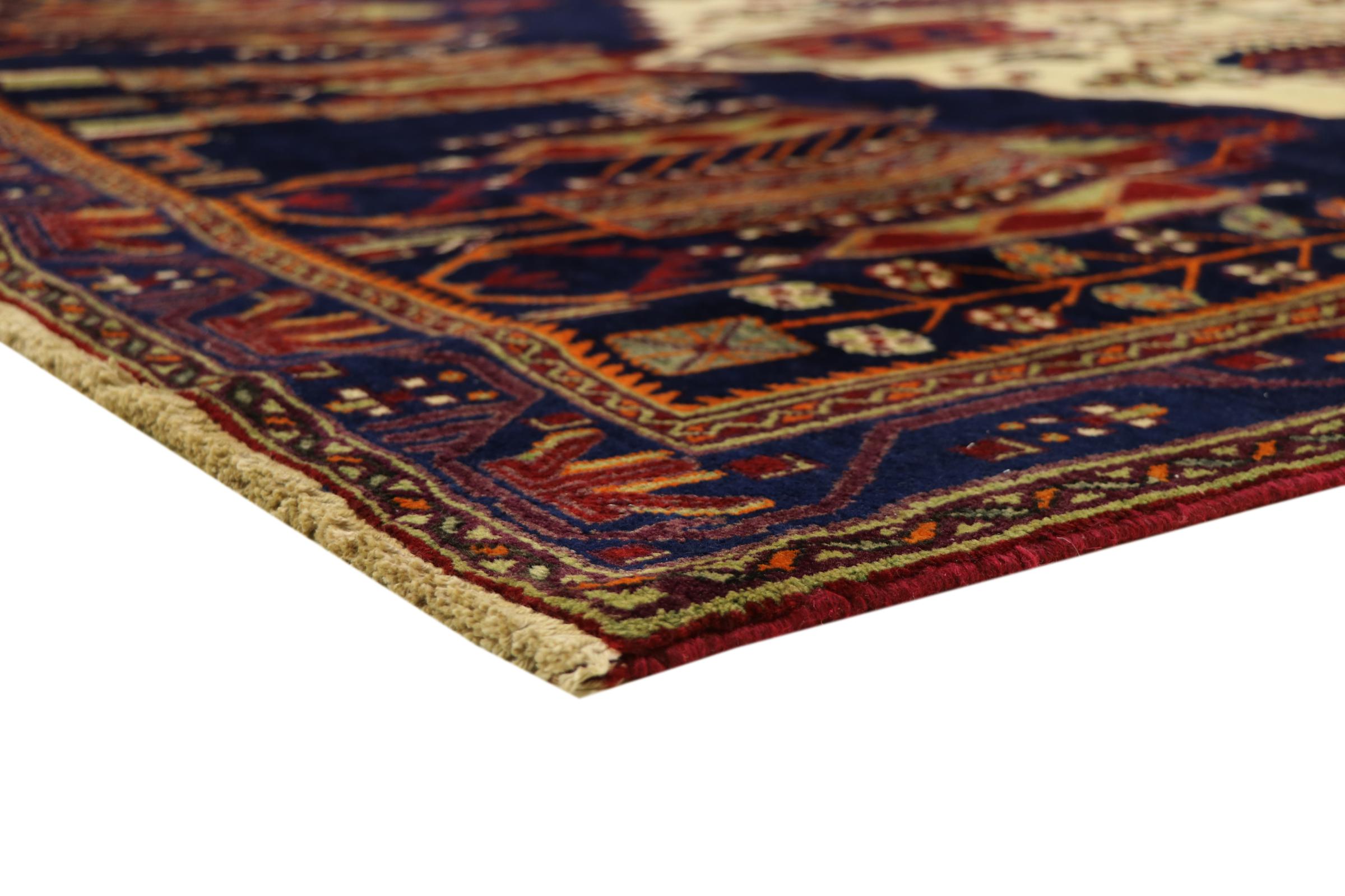 Denna matta tillhör byar och nomadmattor från Iran, tidigare Persien. Denna typ av matta är handknuten i små städer och byar i den gamla traditionen. Nomader gör också persiska mattor under öppen himmel. Mattorna är knutna helt från huvudet utan mall. De kännetecknas av klassiska ornament som är utformade i linjära och geometriska mönster. Tack vare deras kulturella och traditionella ursprung har dessa mattor en unik karaktär som förkroppsligar det antika Persien.