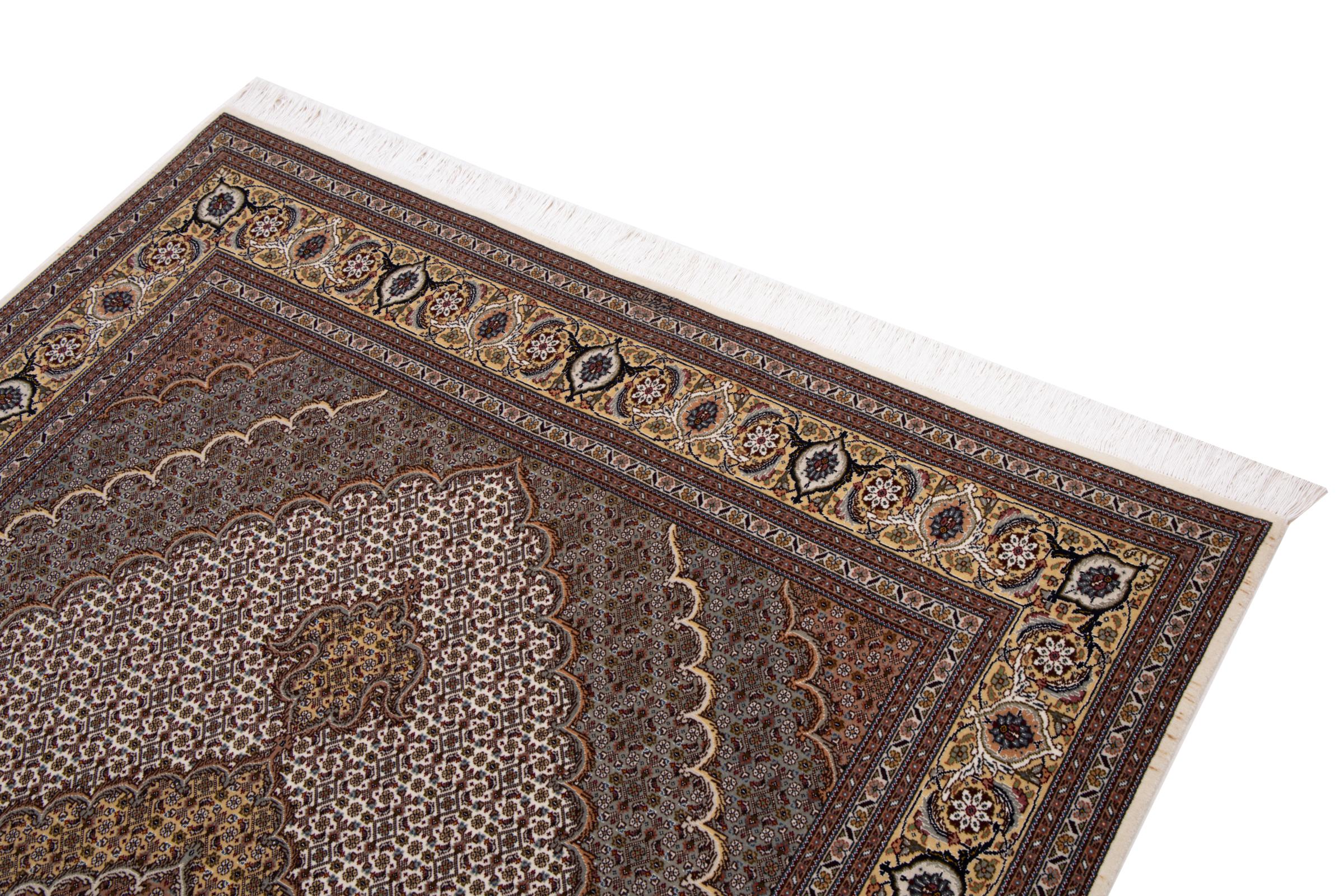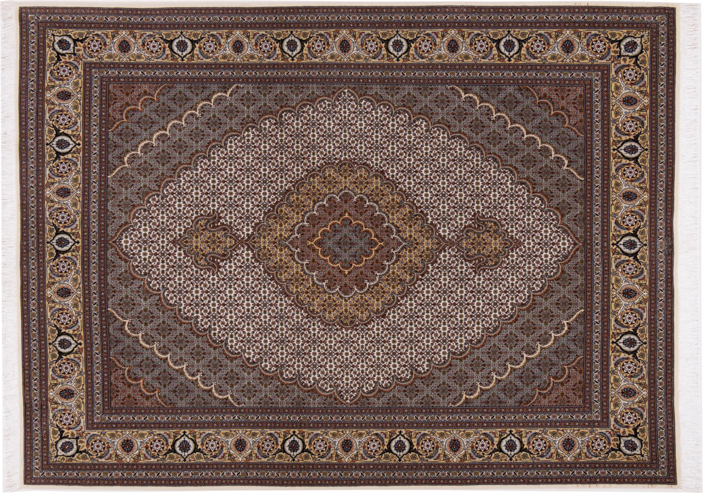 Mattans ID: 29235700617754 Storlek: 203x148 cm Tjocklek: ap. 7 mm Knuttäthet: 440 000 - 490 000 / m² Tillverkning: Knuten för hand Lugg: Ull med silke Varp: Bomull Ursprung: Persien / Iran Ålder: Ny Vikt: ap. 9 kg Också känd som Tabriz, Tabris, Täbris, Tebriz, Tebris, 40Raj, 50Raj I lager: Unik - Endast 1 i lager