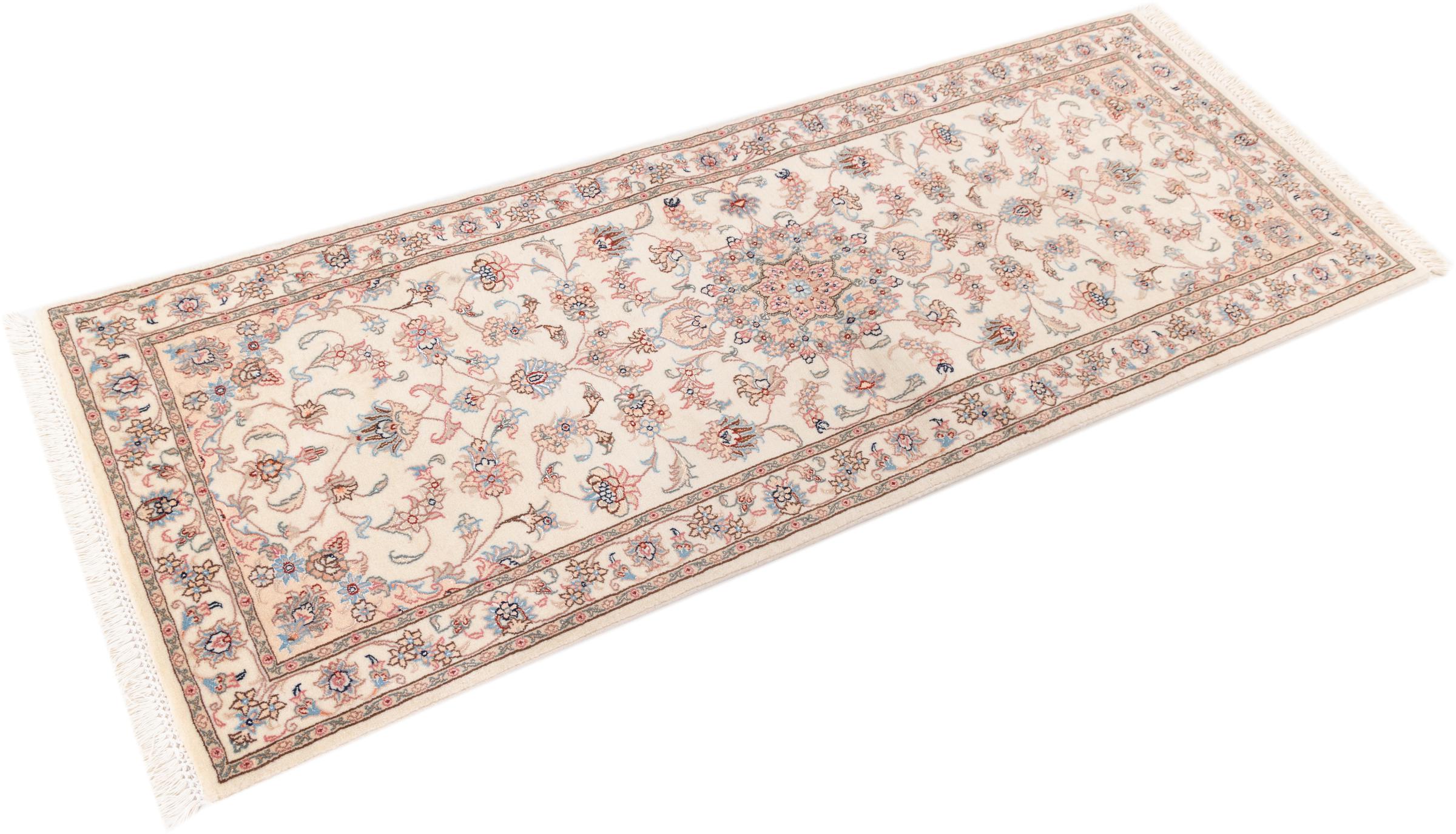 Mattans ID: 2773600164 Storlek: 218x80 cm Tjocklek: ap. 8 mm Knuttäthet: 450 000 - 500 000 / m² Tillverkning: Knuten för hand Lugg: Handspunnen ull Varp: Bomull Ursprung: Persien / Iran Ålder: Ny Vikt: ap. 5 kg Också känd som Tabriz, Tabris, Täbris, Tebriz, Tebris, 40Raj, 50Raj I lager: Unik - Endast 1 i lager