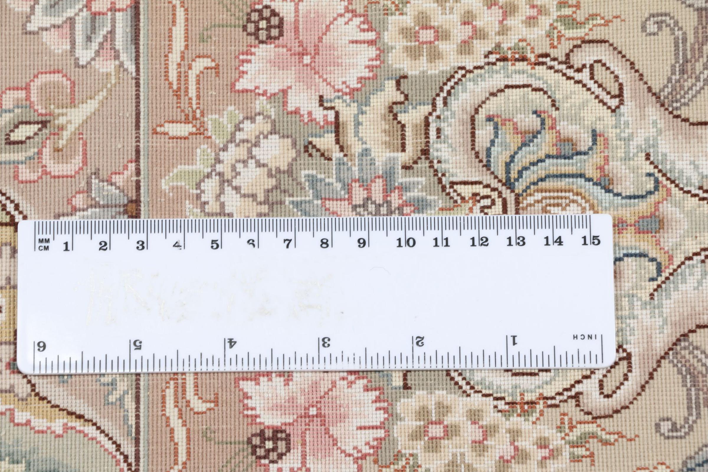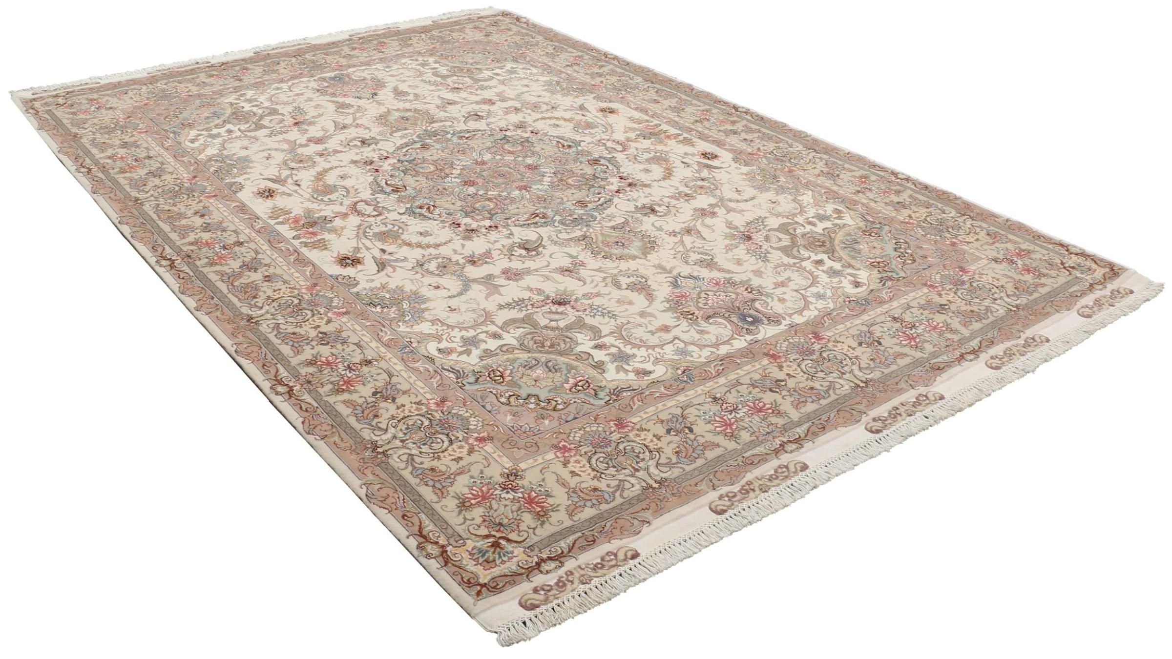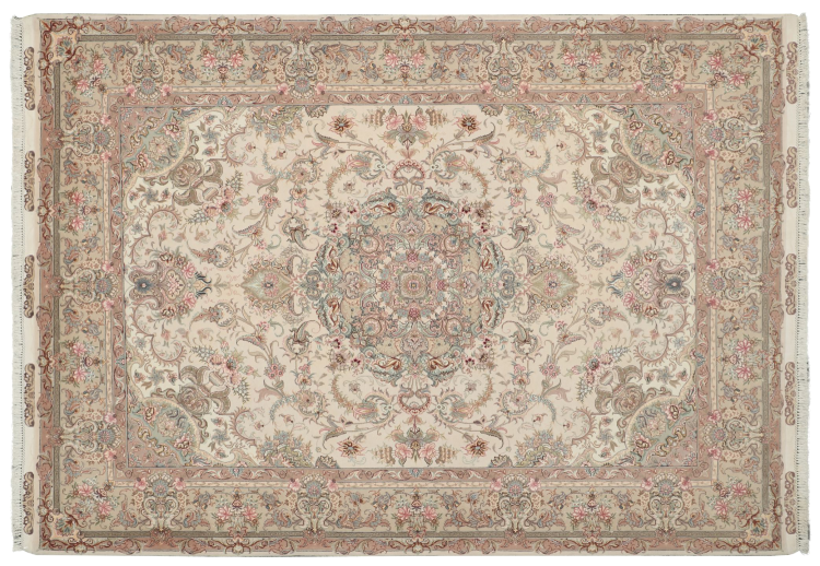 Mattans ID: 308823008805447 Storlek: 211x149 cm Tjocklek: ap. 6 mm Knuttäthet: 1 000 000 / m² Tillverkning: Knuten för hand Lugg: Ull med silke Varp: Silke Ursprung: Persien / Iran Ålder: Ny Vikt: ap. 9 kg Också känd som Tabris, Tabriz, Tebris, Tebriz, Täbris, 70Raj I lager: Unik - Endast 1 i lager