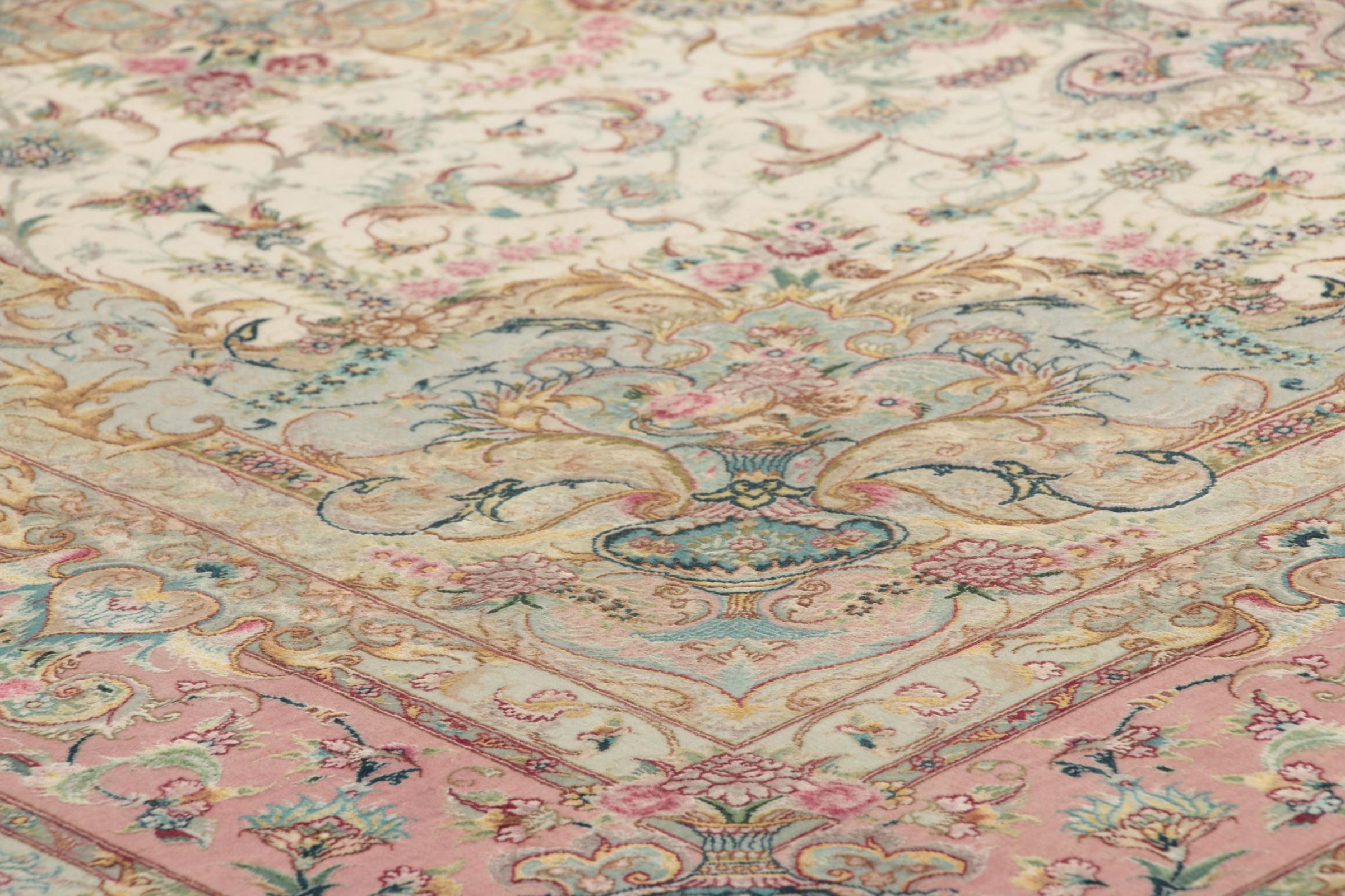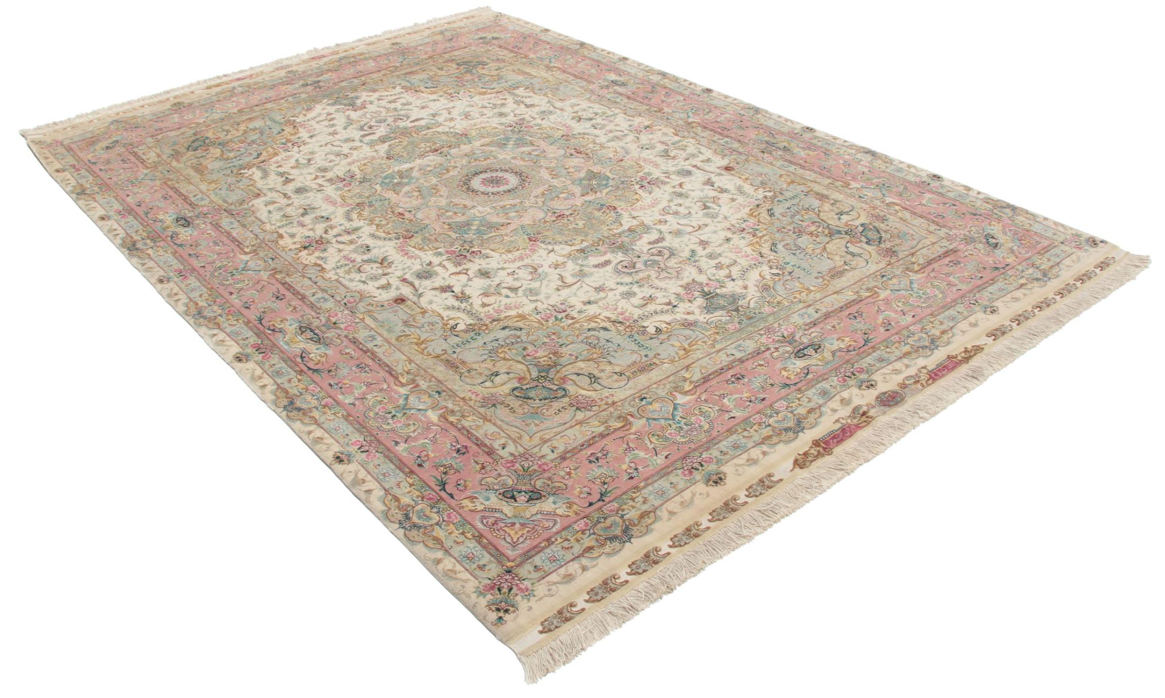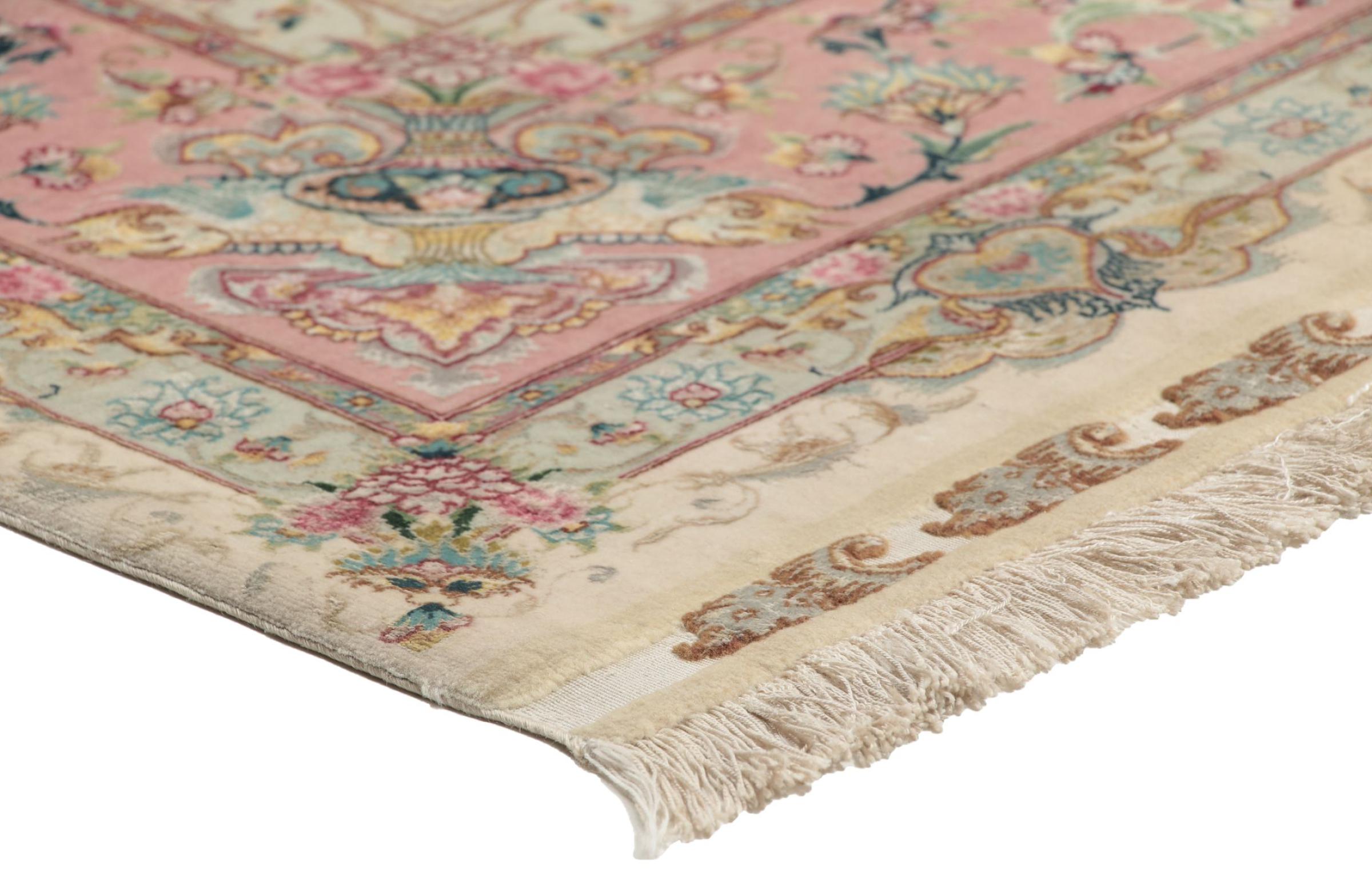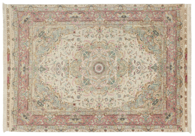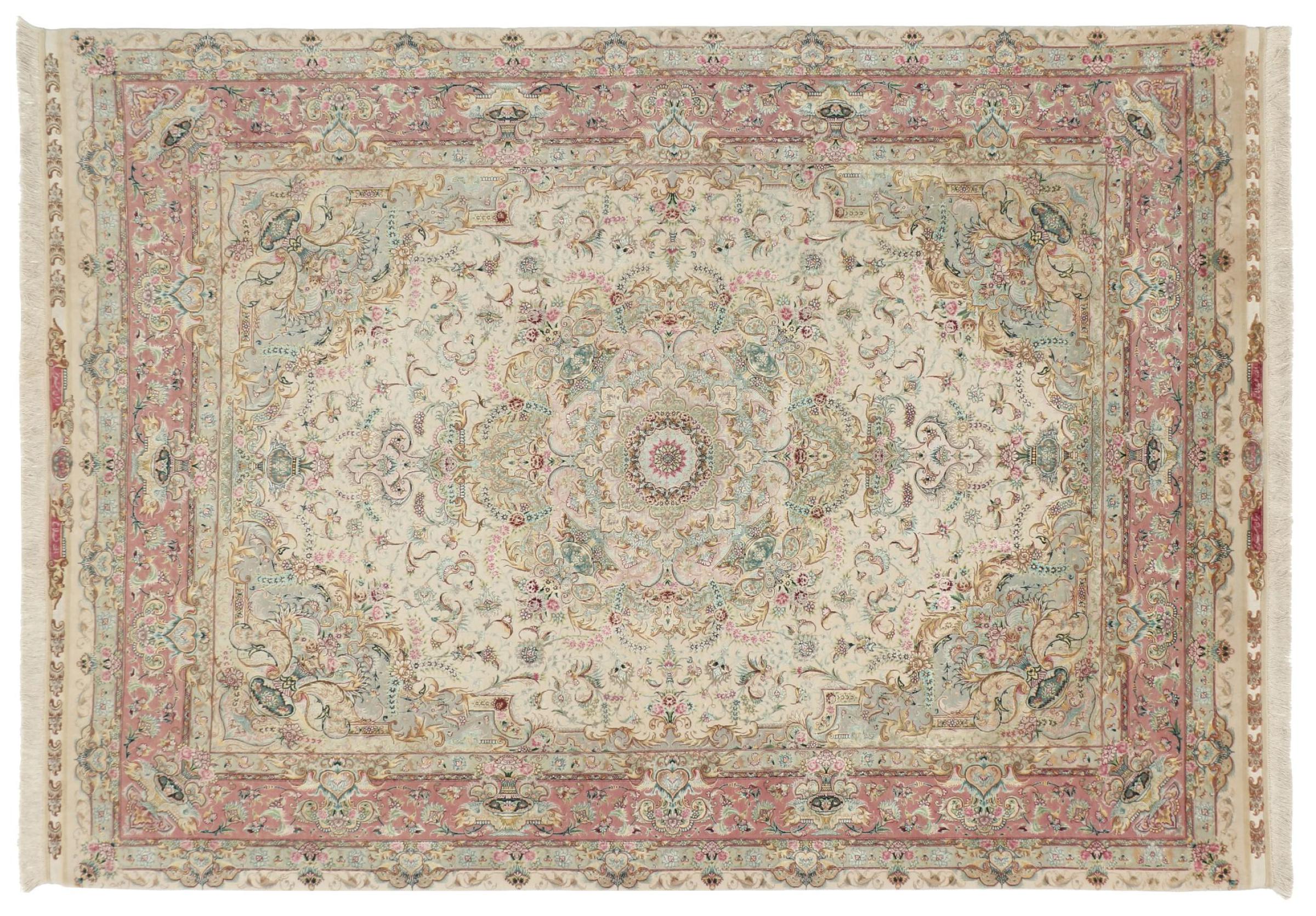 Mattans ID: 309364004705936 Storlek: 218x156 cm Tjocklek: ap. 6 mm Knuttäthet: 1 000 000 / m² Tillverkning: Knuten för hand Lugg: Ull med silke Varp: Silke Ursprung: Persien / Iran Ålder: Ny Vikt: ap. 10 kg Också känd som Tabris, Tabriz, Tebris, Tebriz, Täbris, 70Raj I lager: Unik - Endast 1 i lager