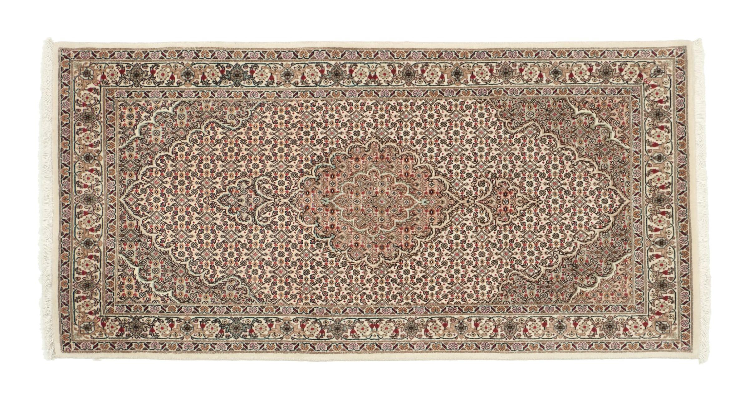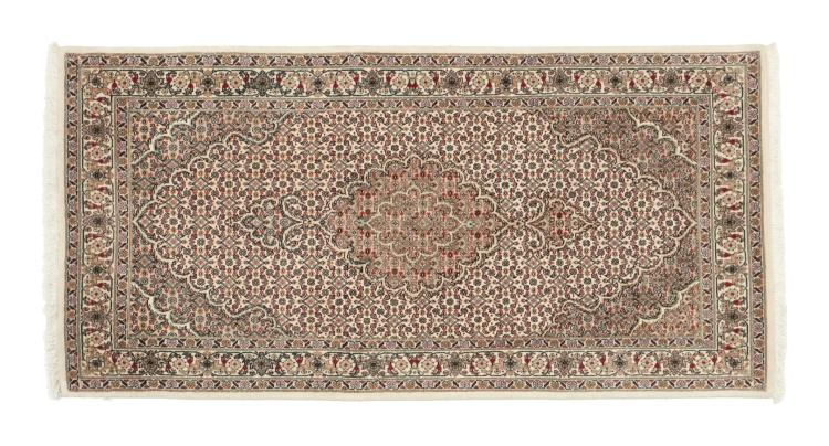 Mattans ID: 308737006150190 Storlek: 141x71 cm Tjocklek: ap. 8 mm Knuttäthet: 440 000 - 490 000 / m² Tillverkning: Knuten för hand Lugg: Ull med silke Varp: Bomull Ursprung: Persien / Iran Ålder: Ny Vikt: ap. 4 kg Också känd som Tabris, Tabriz, Tebris, Tebriz, Täbris I lager: Unik - Endast 1 i lager